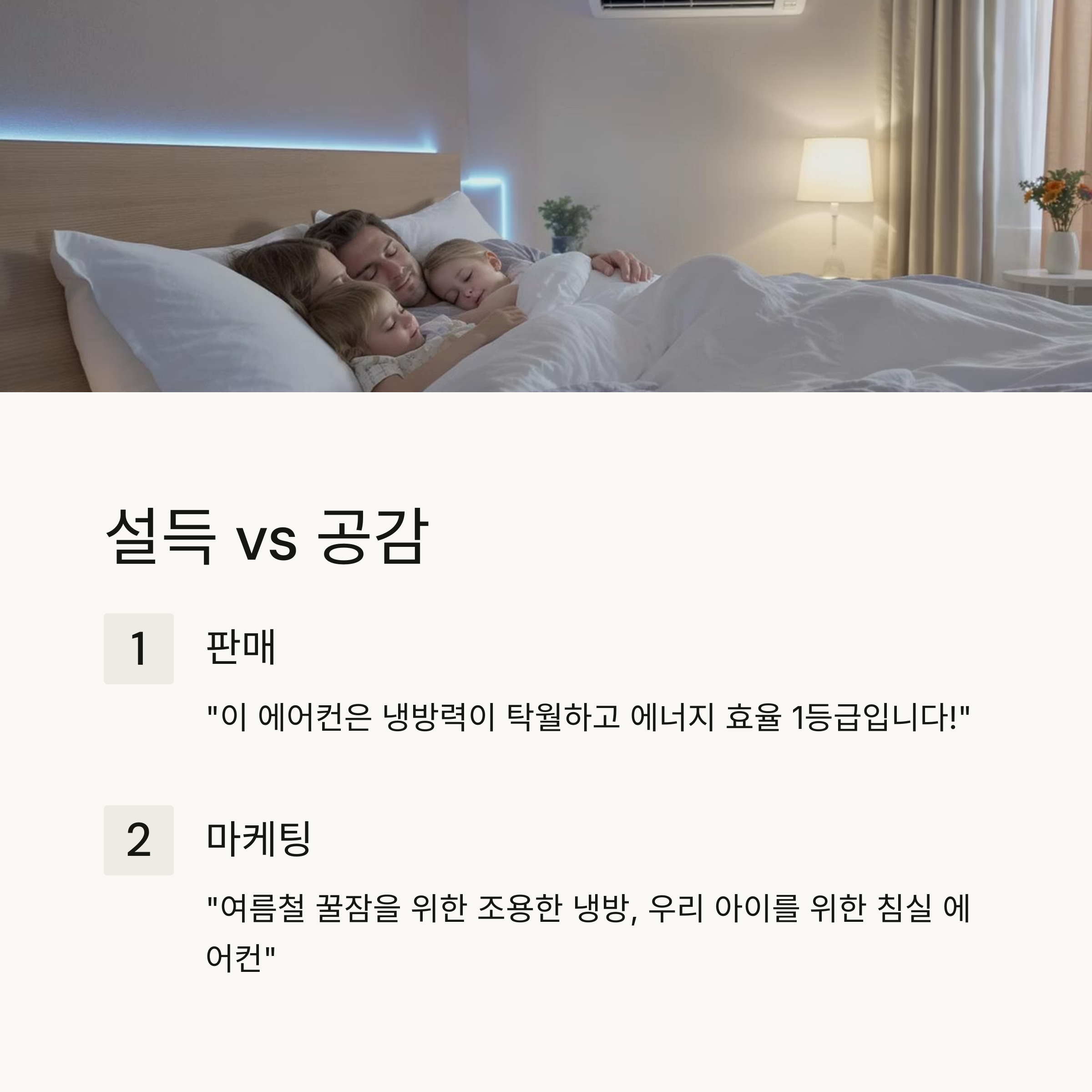 예: "여름철 꿀잠을 위한 조용한 냉방, 우리 아이를 위한 침실 에어컨"
