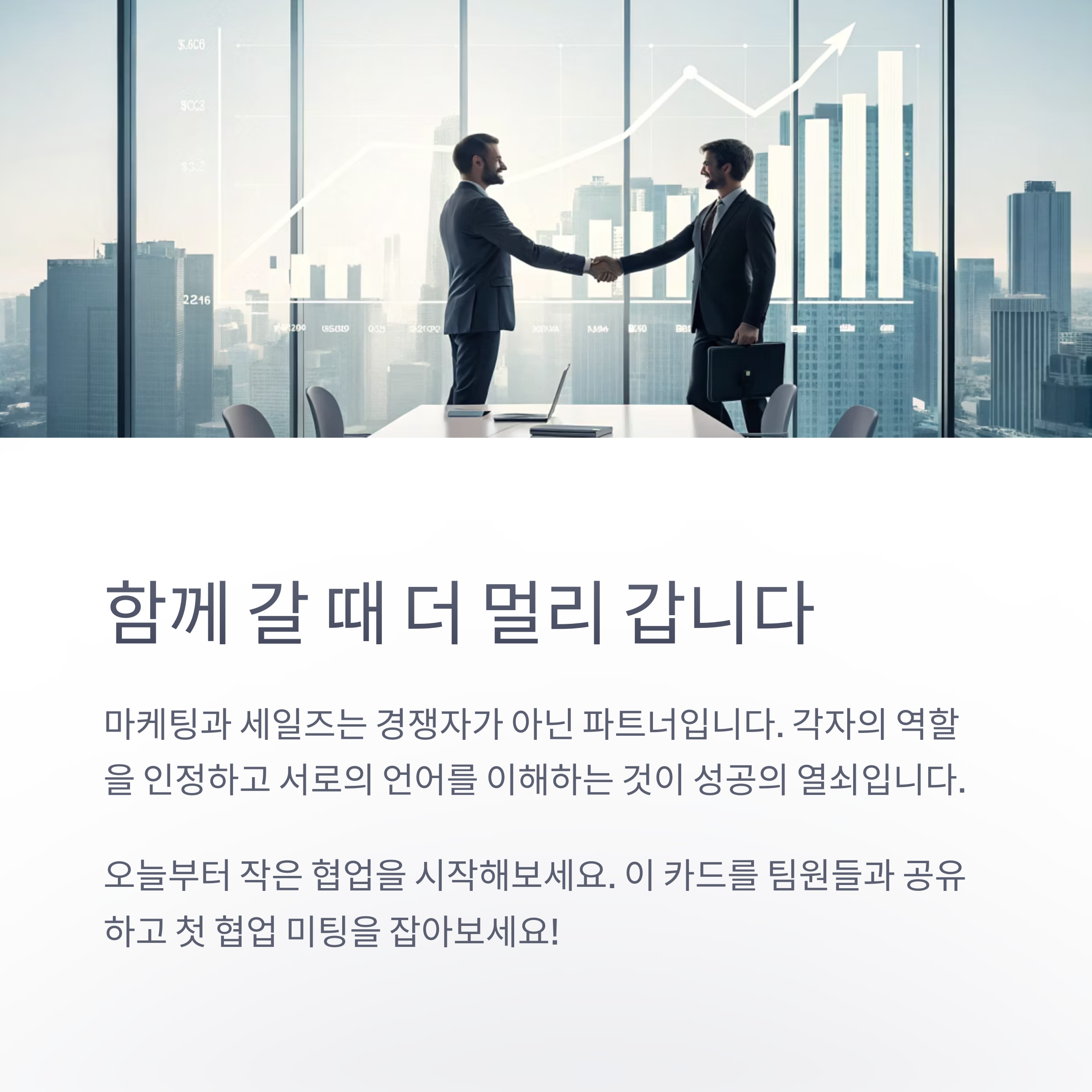 마케팅과 세일즈는 경쟁하는 부서가 아니라, 같은 목표를 향해 달리는 파트너입니다.