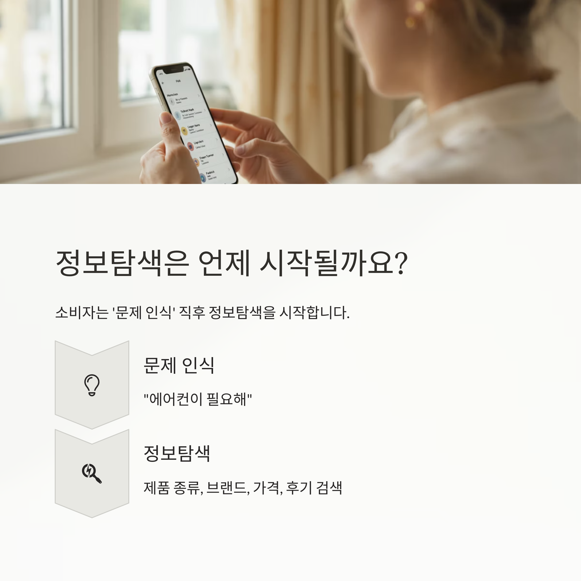 즉, 정보탐색은 소비자가 ‘뭔가 필요하다’고 느낀 직후 시작되는
