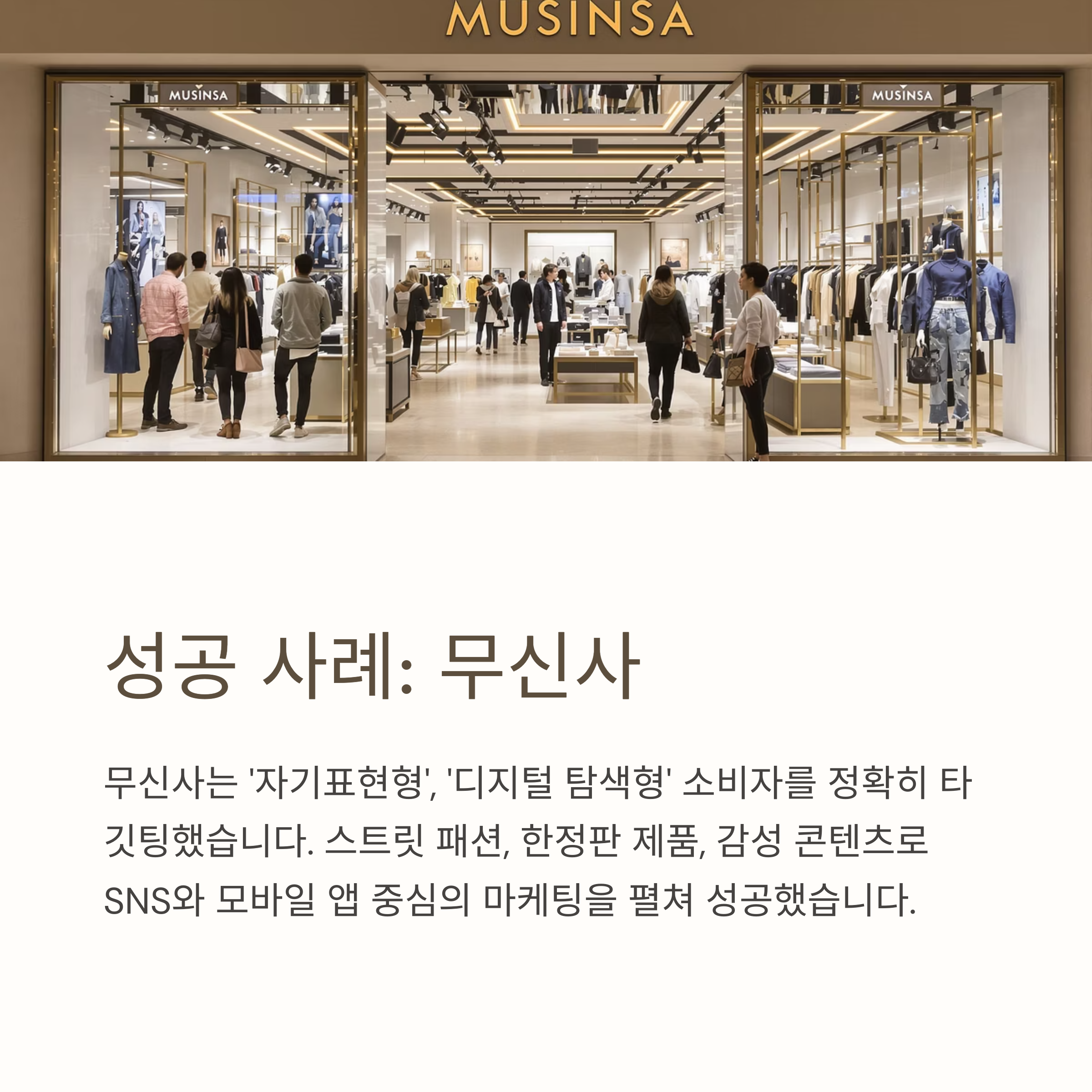 무신사는 ‘자기표현형’, ‘디지털 탐색형’ 소비자들을 정확히 타깃으로 삼은 브랜드입니다.