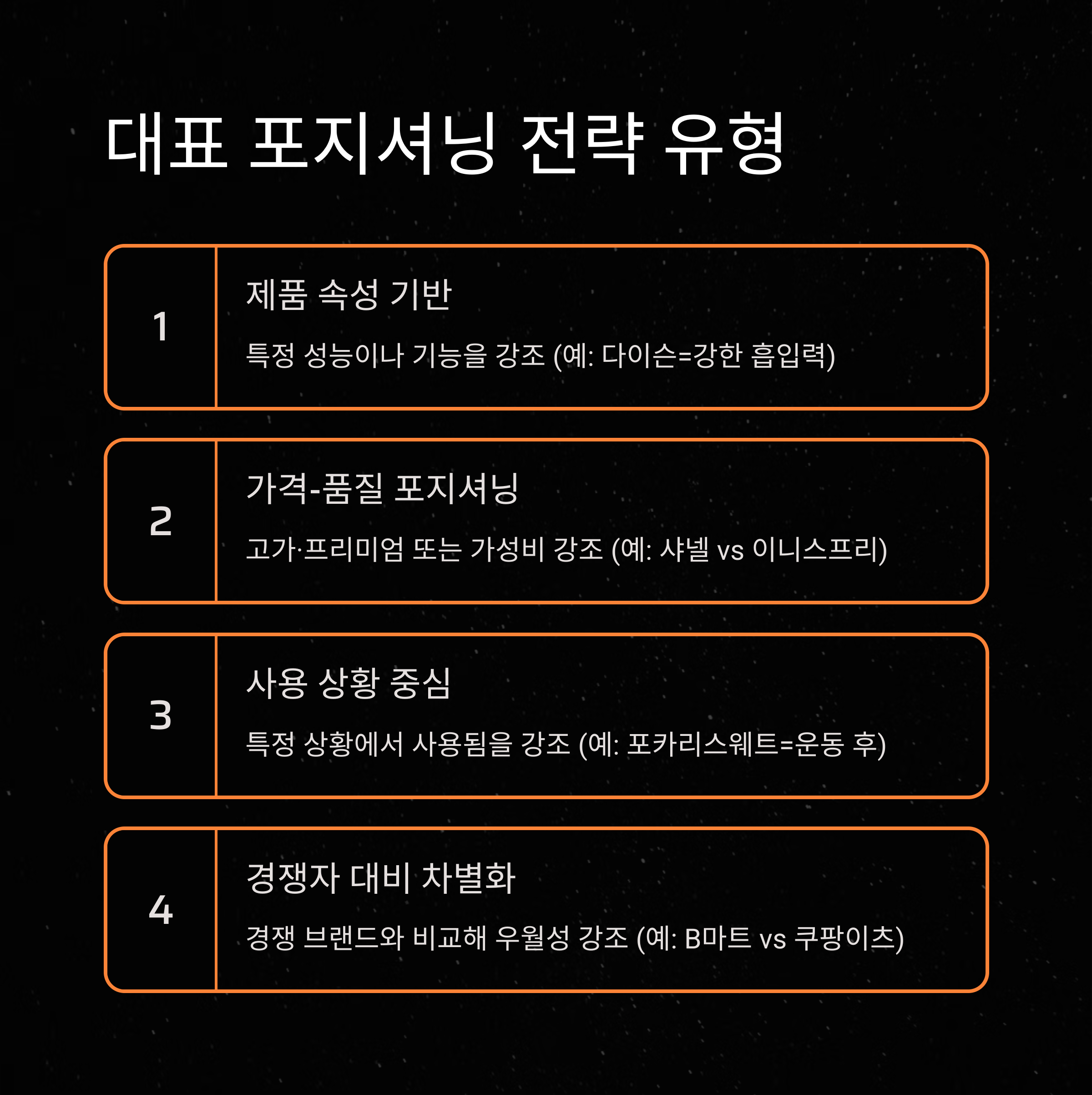 다양한 포지셔닝 전략 중 가장 자주 사용되는 4가지를 소개합니다.