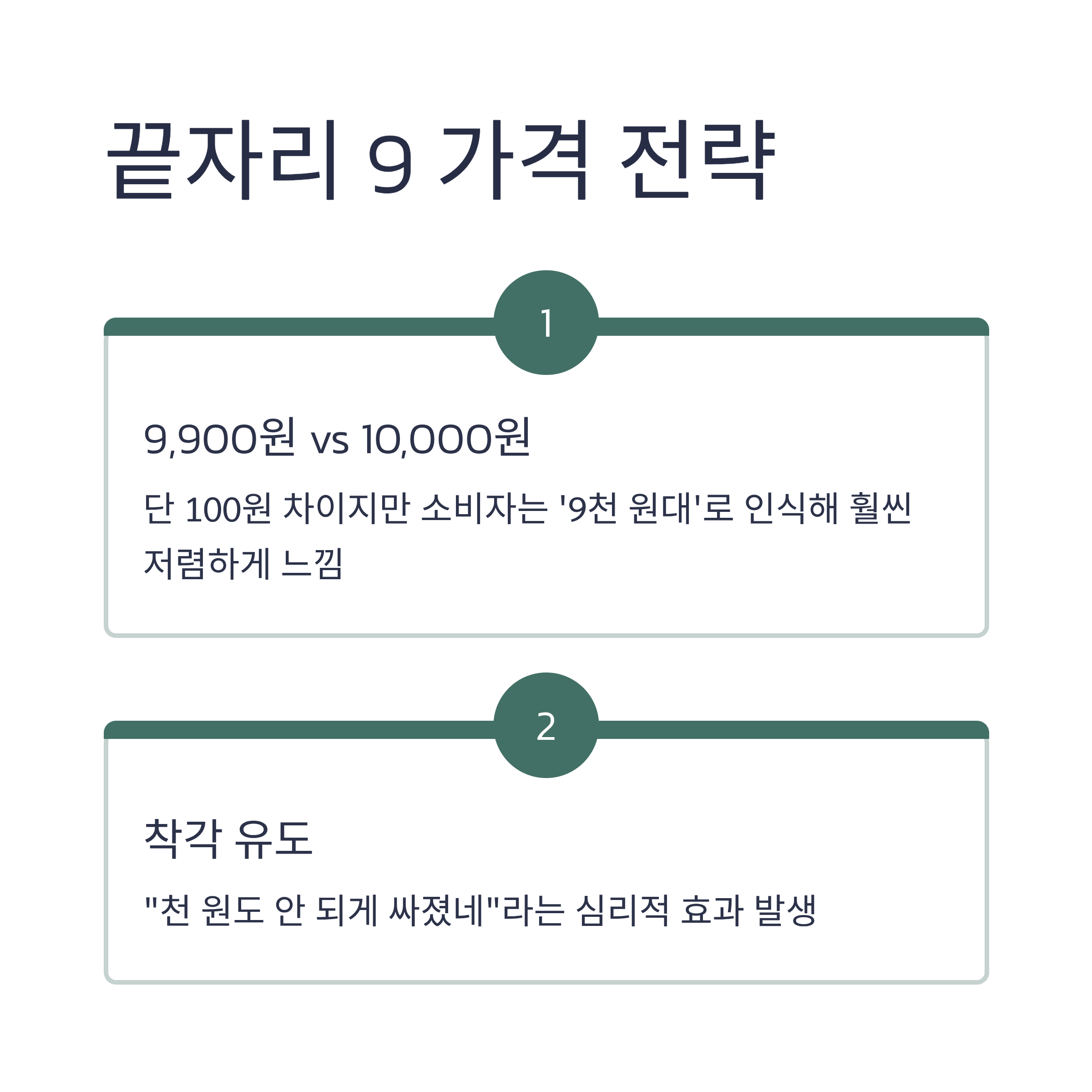 | 끝자리 9 가격 | 9,900원처럼 실제보다 저렴하게 느끼게 만듦 |