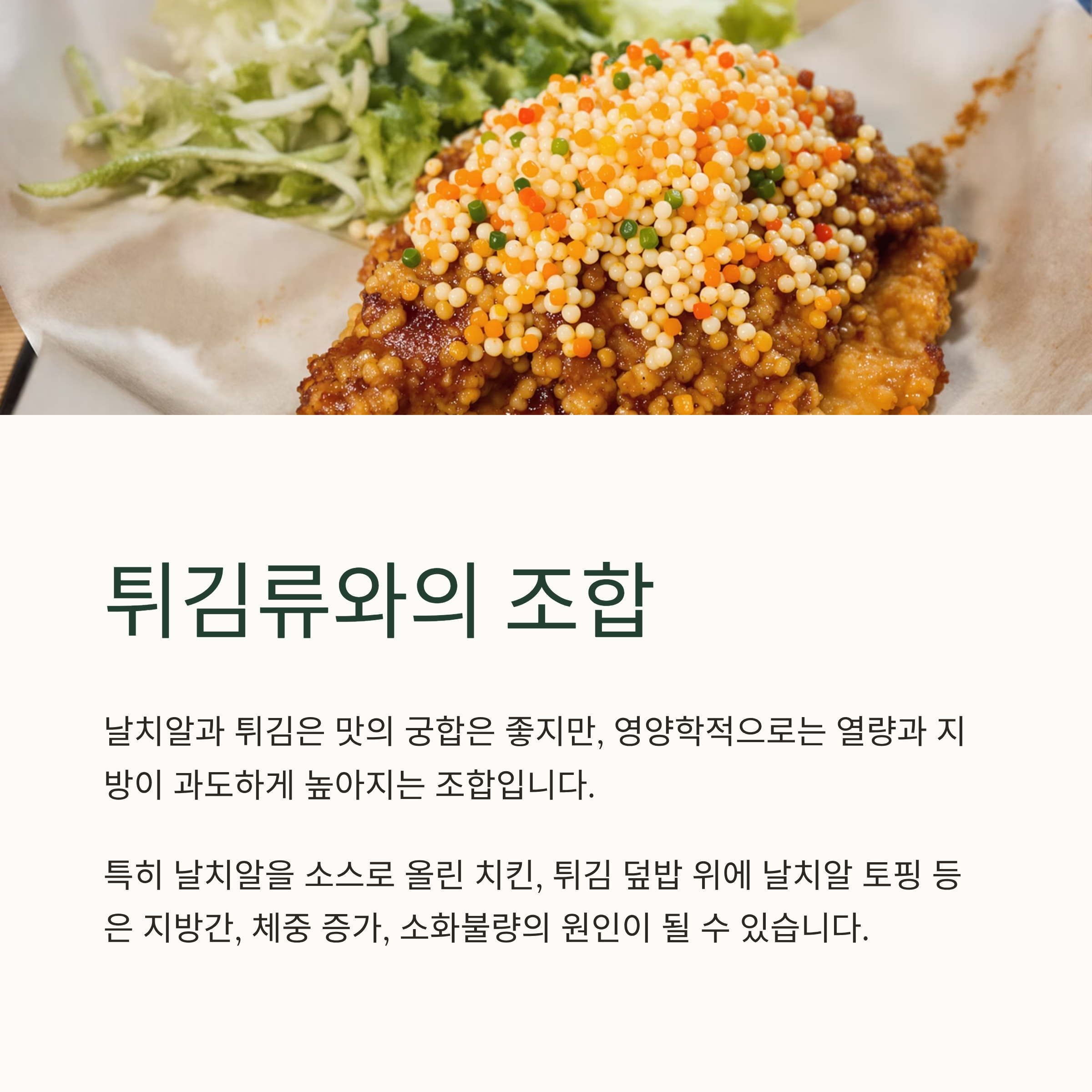 날치알과 튀김은 맛의 궁합은 좋지만,