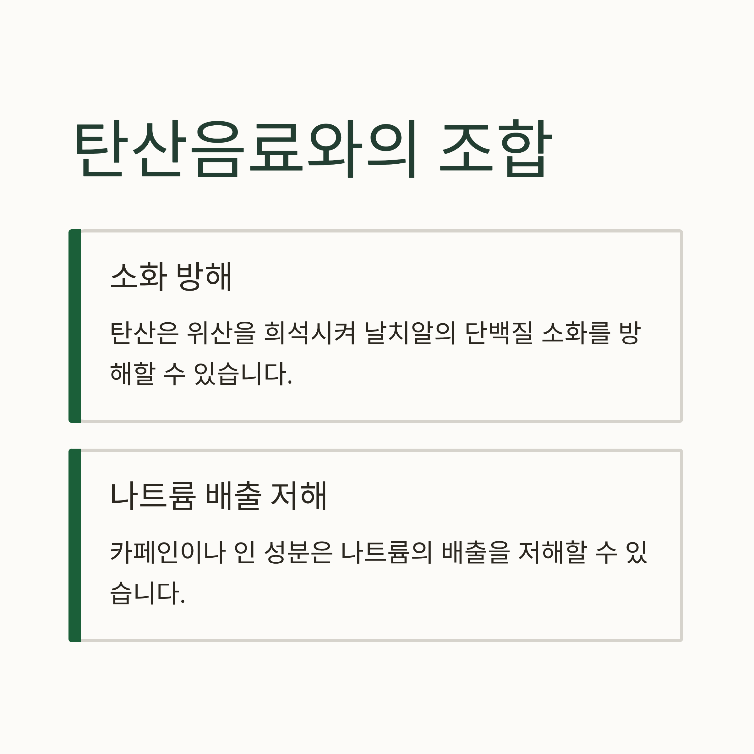소금이 많거나 동물성 지방이 많은 식품과의 동시 섭취는 부담이 될 수 있습니다.