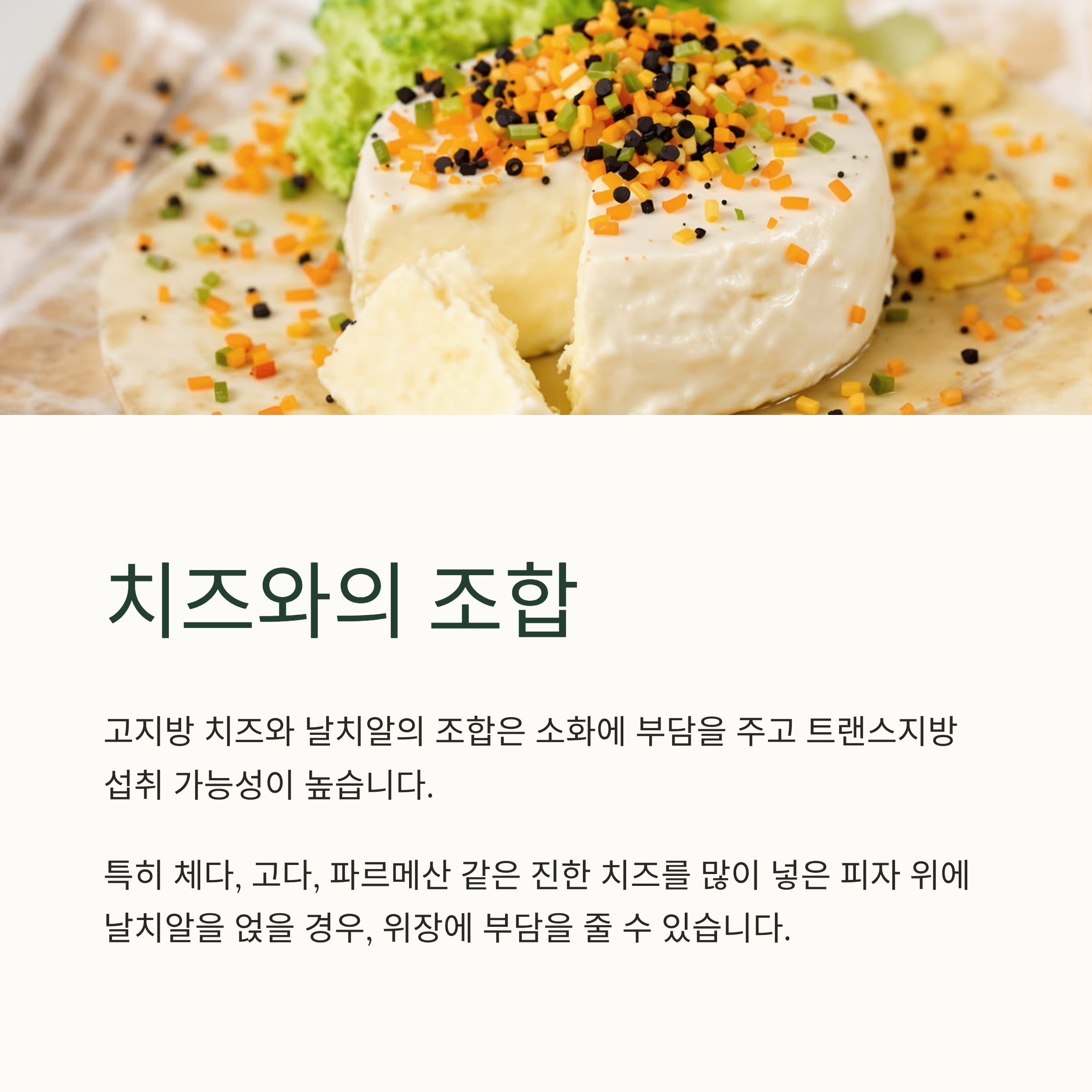 고지방 치즈의 경우 날치알과 함께 먹을 시