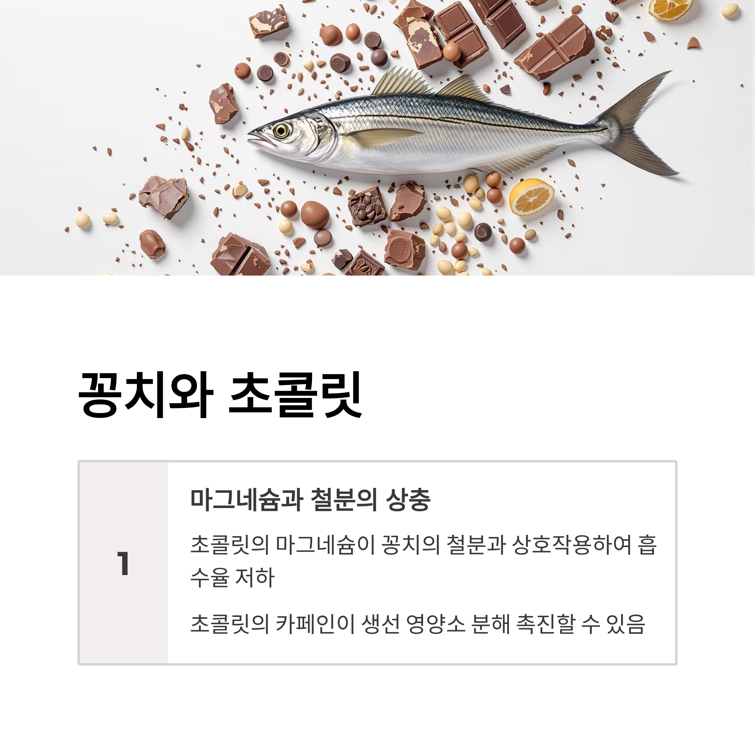 초콜릿에 들어 있는 마그네슘은 꽁치의 철분과 상호작용하여