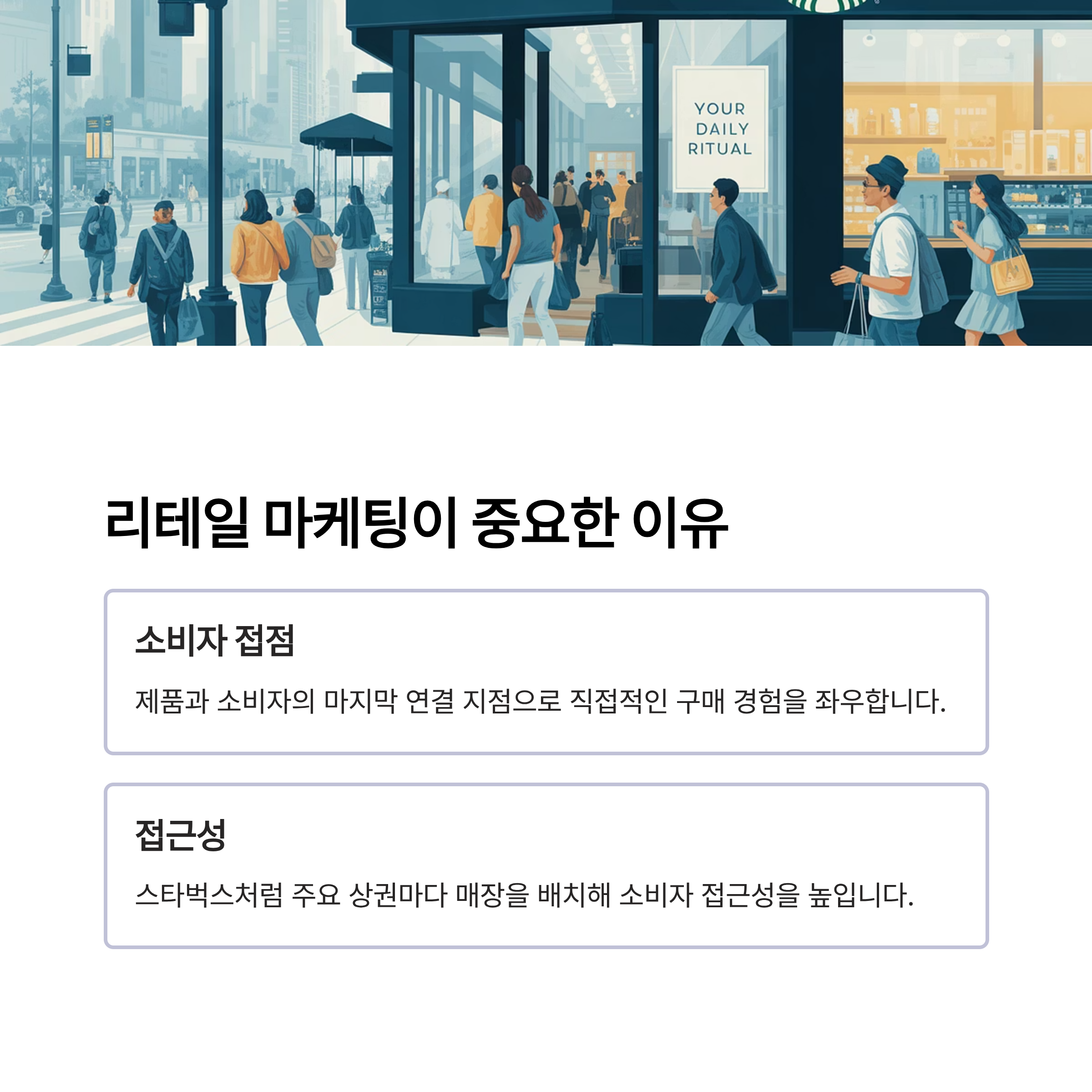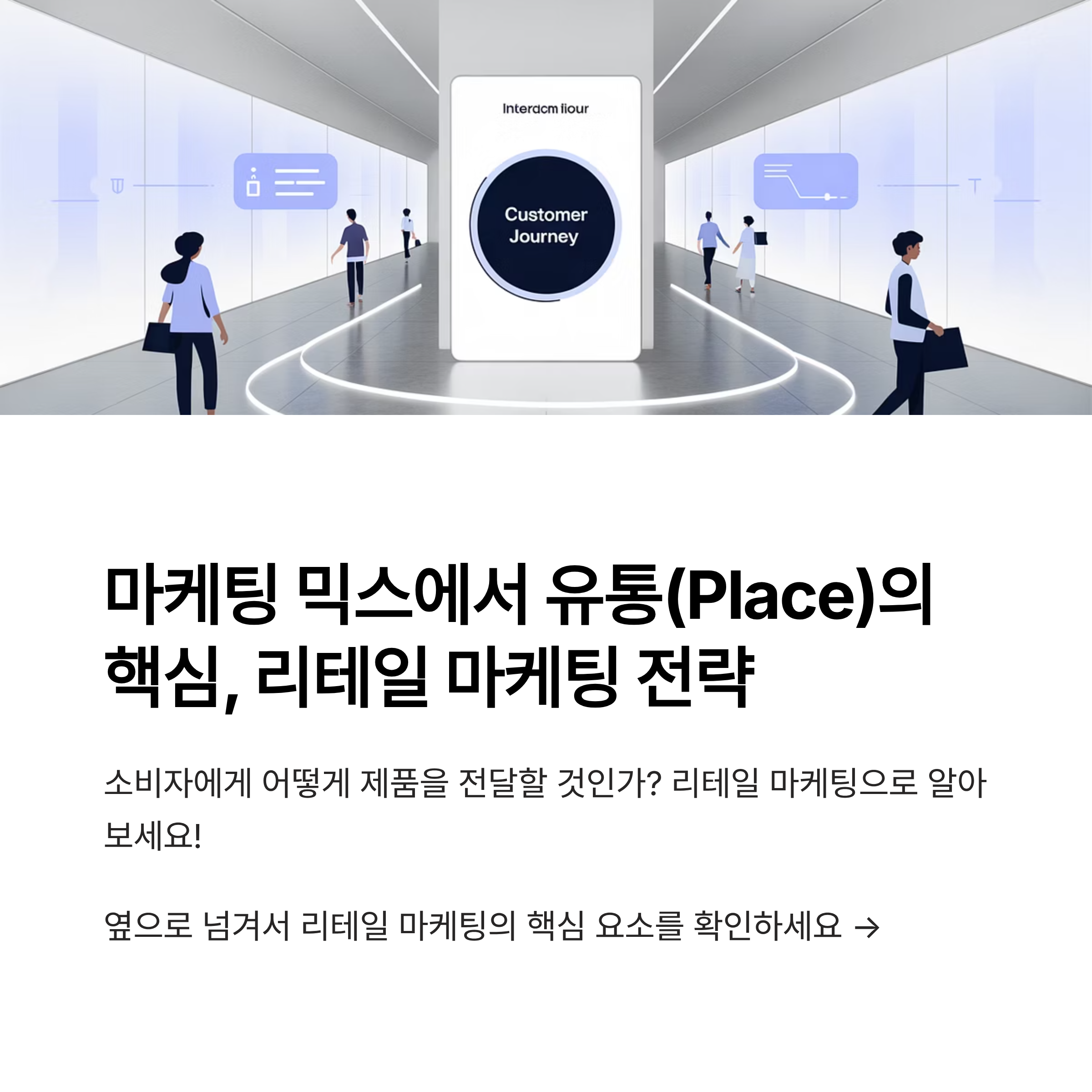 유통(Place)은 마케팅 믹스 4P 중에서도 소비자와 가장 가까운 접점입니다. 제품을 어떻게, 어디서, 어떤 방식으로 소비자에게 전달할 것인지를 결정하는 것이 바로 리테일 마케팅 전략입니다. 이 글에서는 리테일 마케팅 전략의 개념과 핵심 요소를 쉽고 명확한 예시를 통해 설명드리겠습니다.