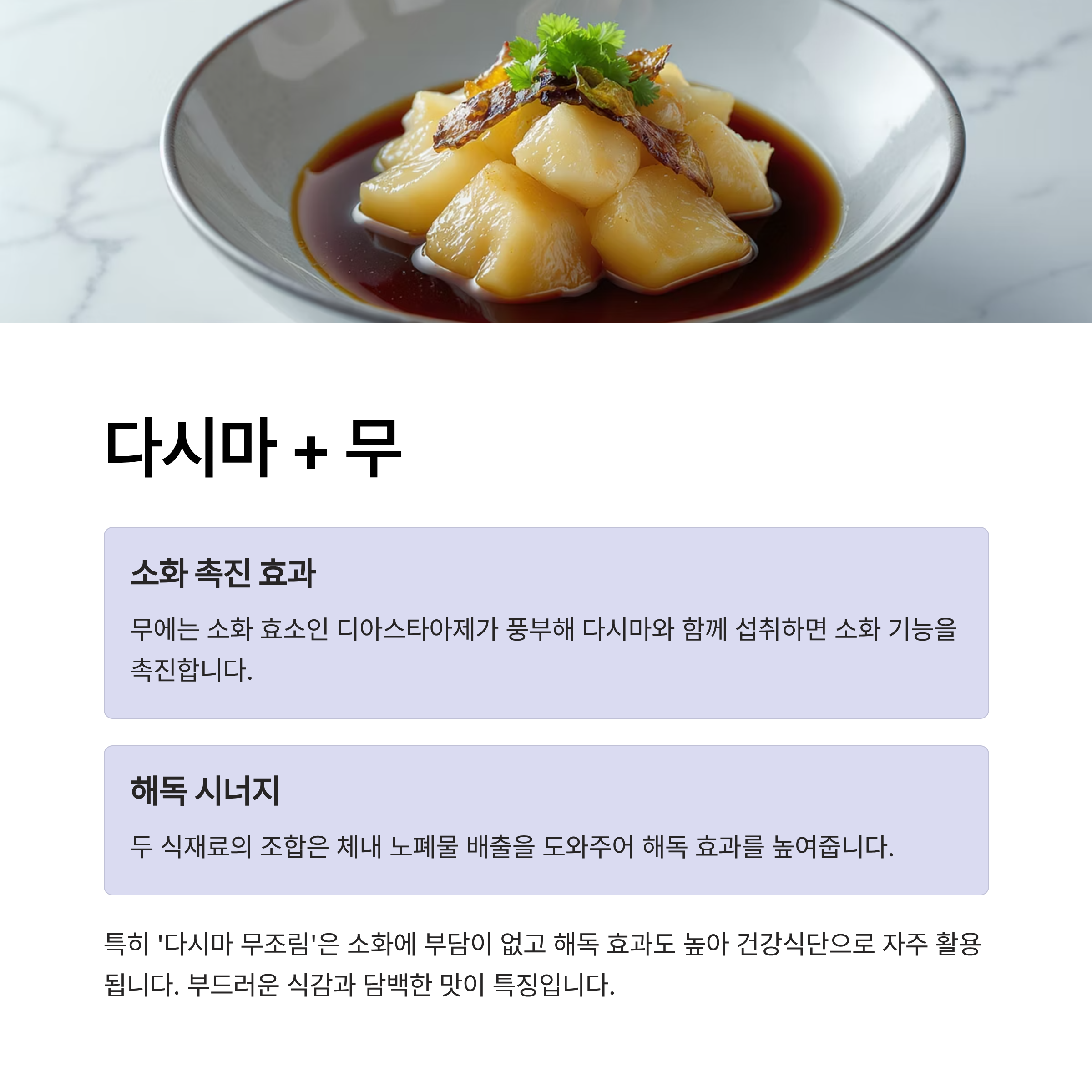 다시마 + 무, 소화 촉진과 해독 효과 시너지
