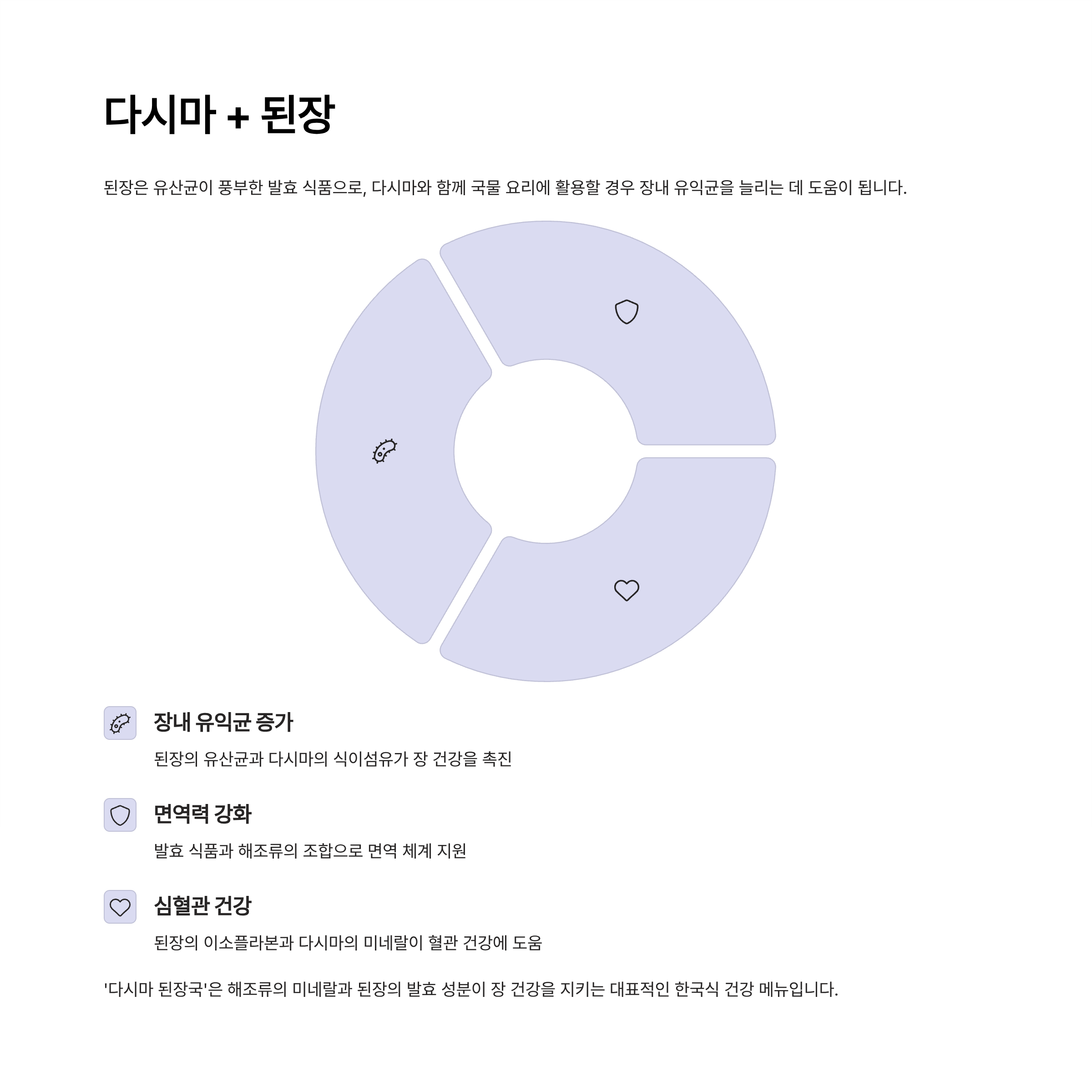 된장은 유산균이 풍부한 발효 식품으로, 다시마와 함께