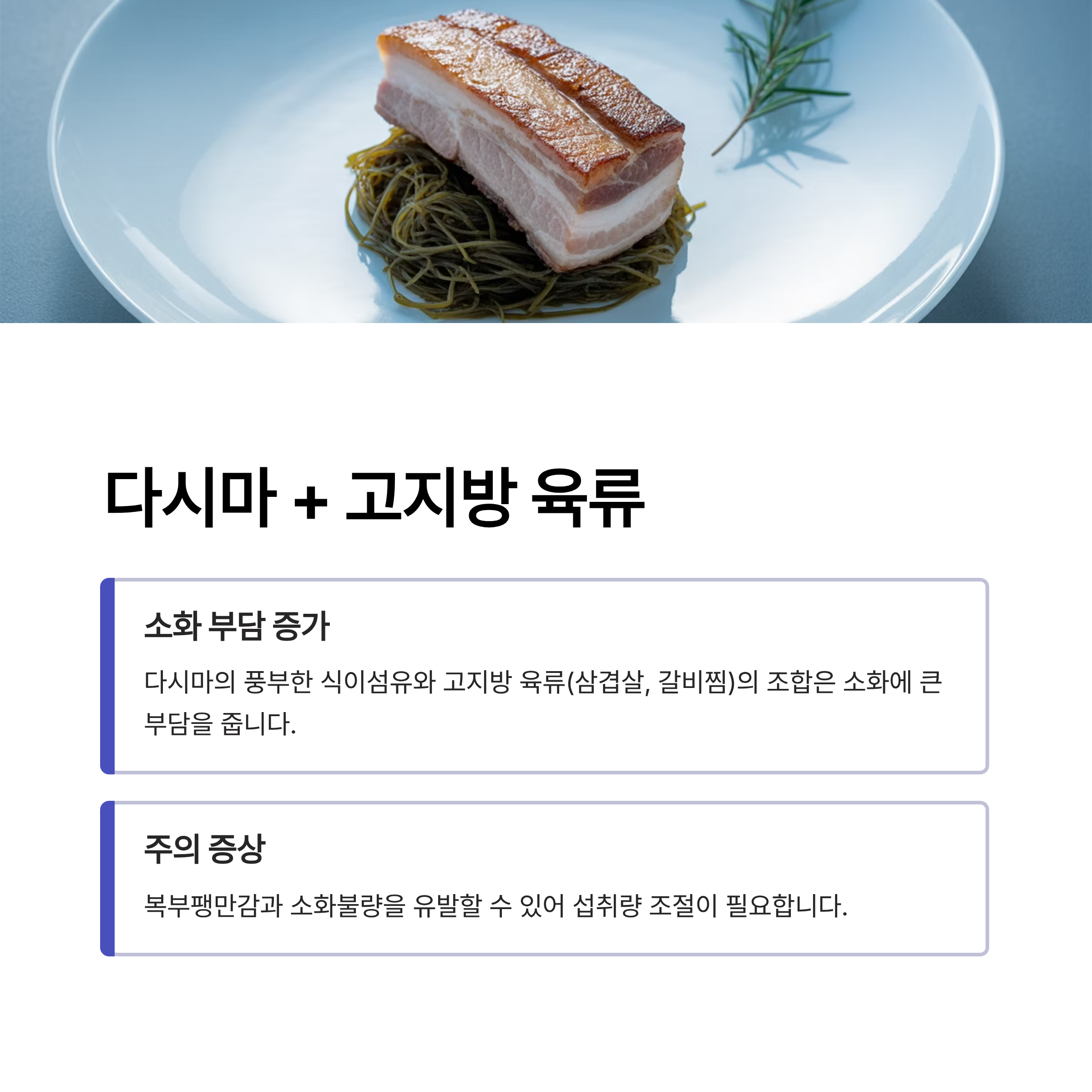 다시마 + 고지방 육류: 소화 부담을 높이는 조합