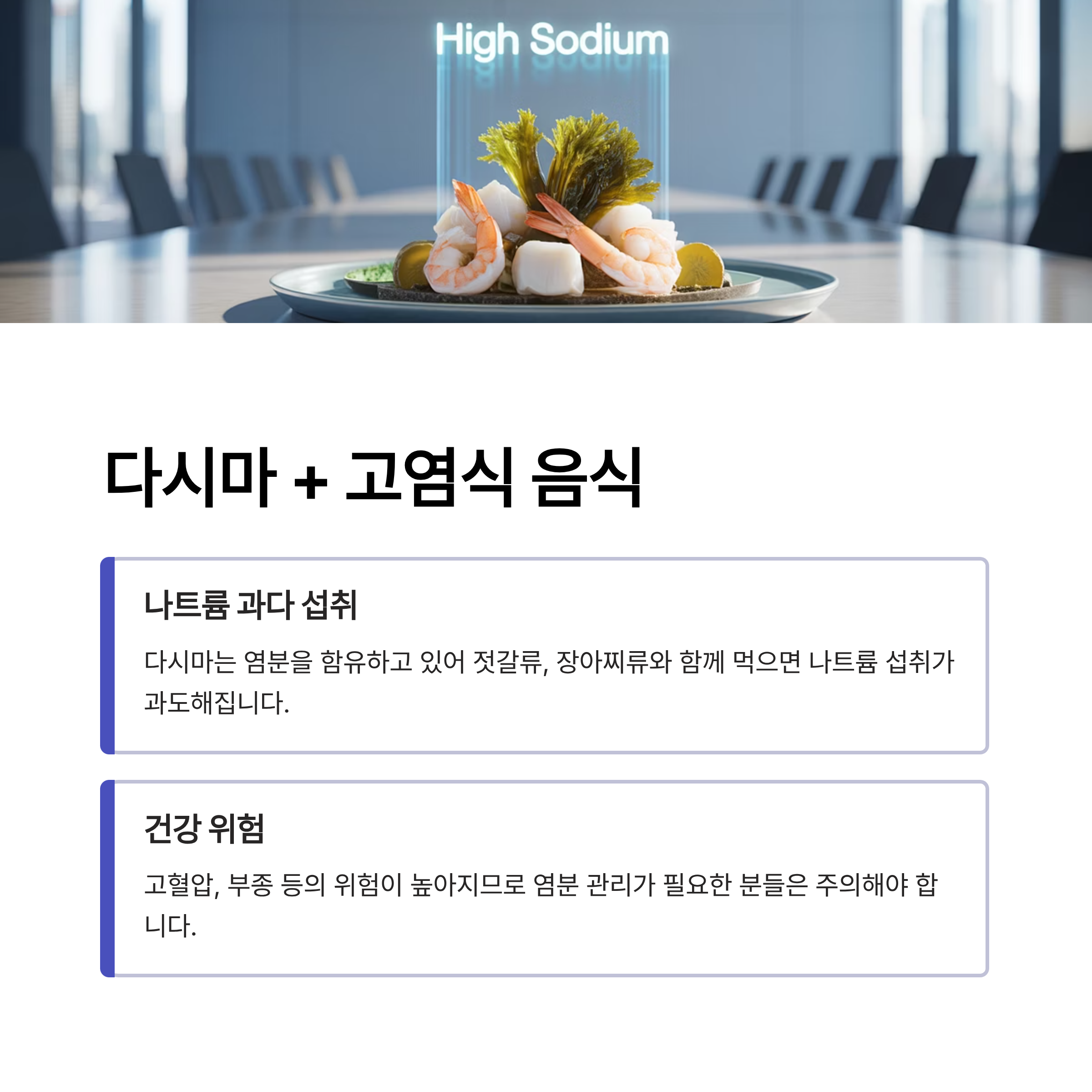 다시마 + 고염식 음식: 나트륨 과다 섭취 위험