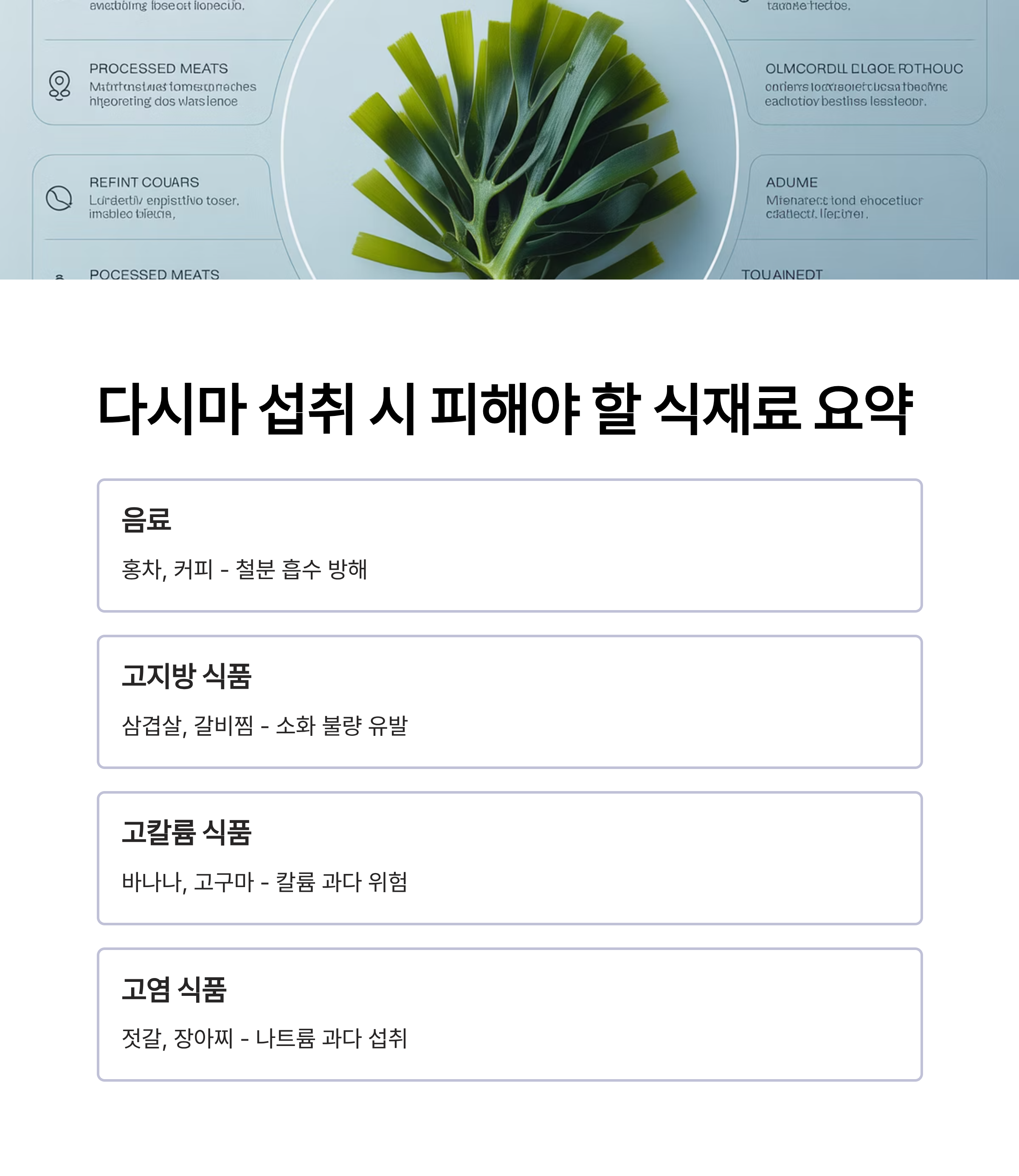 요약: 다시마 섭취 시 피해야 할 식재료 조합