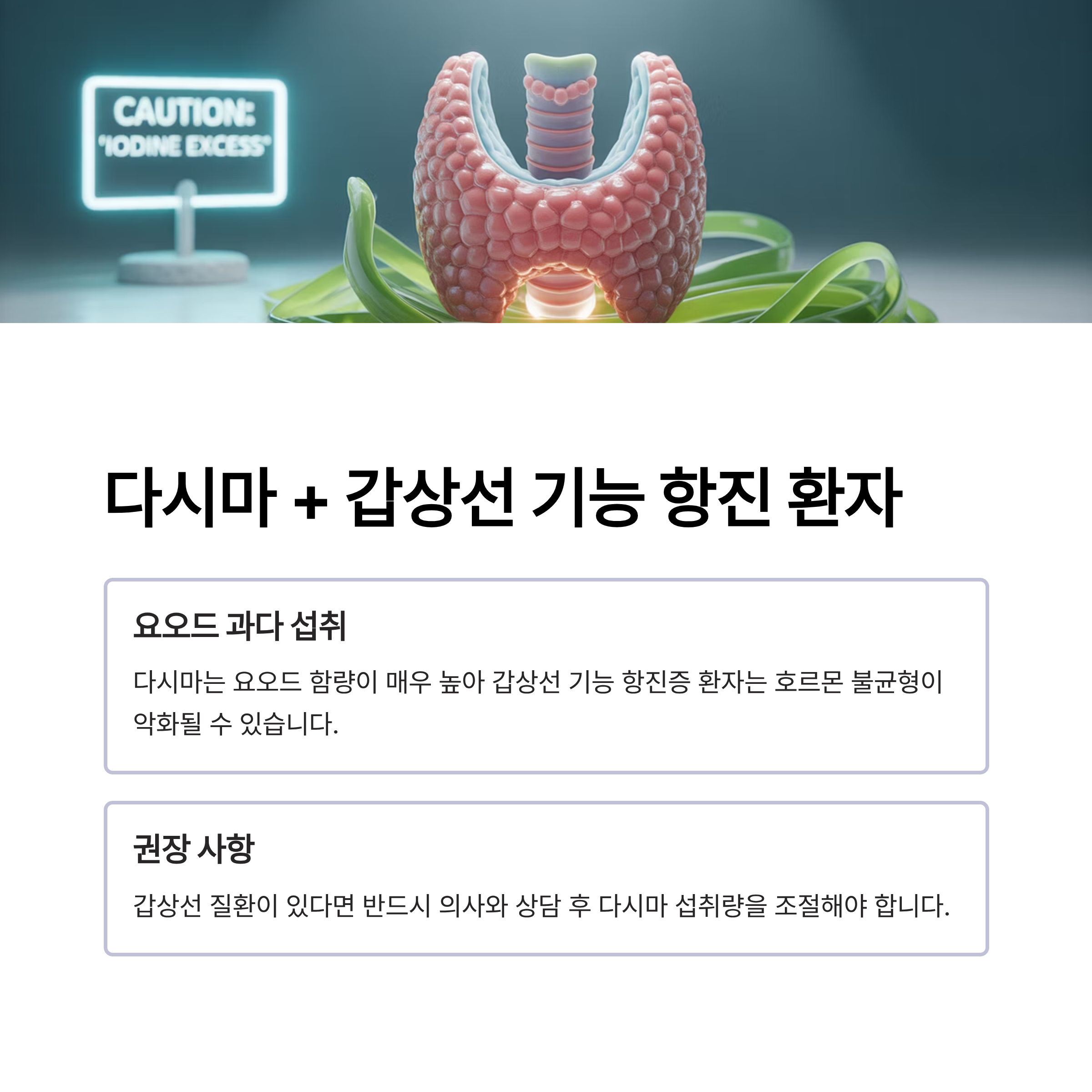 다시마 + 갑상선 기능 항진 환자: 요오드 과다 섭취 주의
