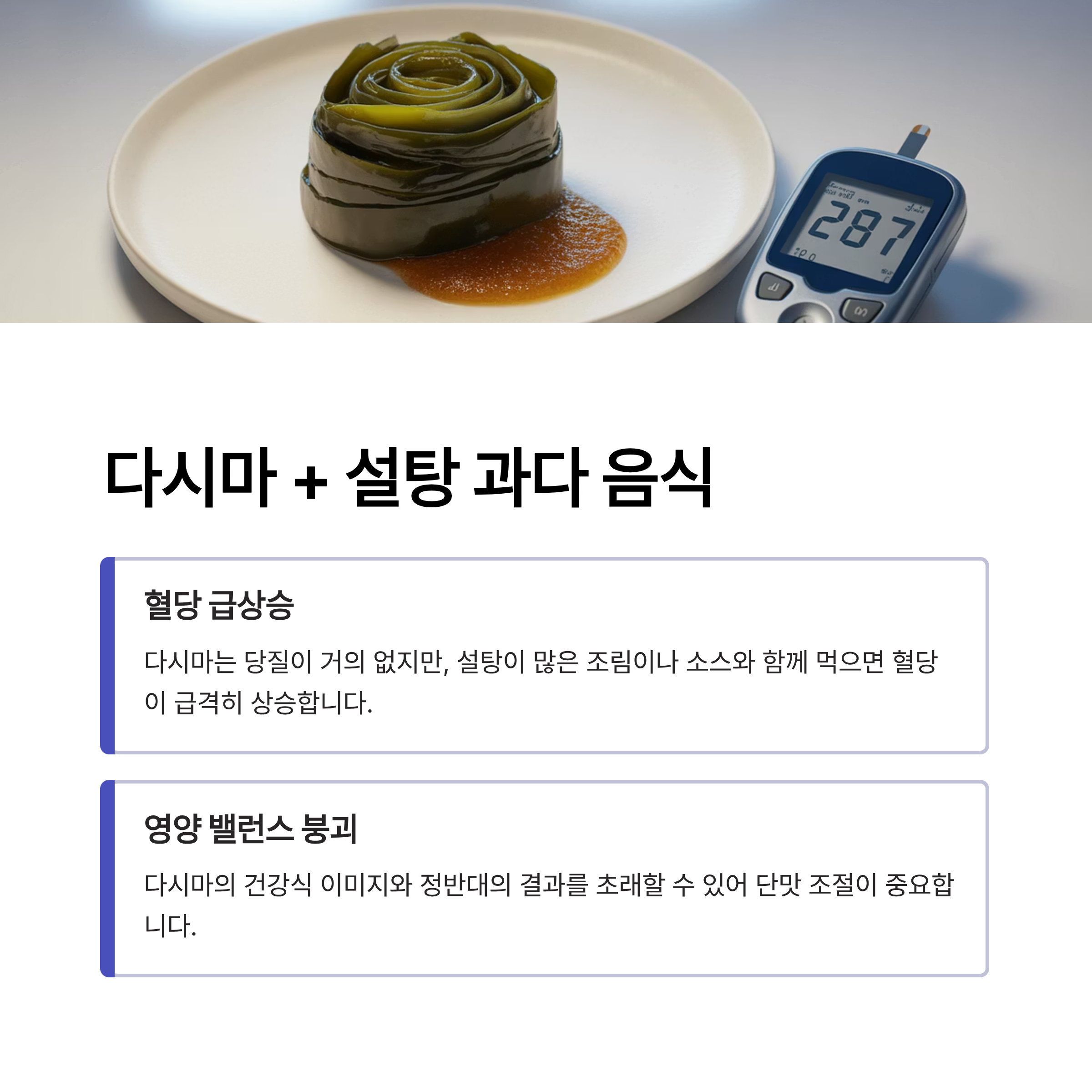 다시마 + 설탕 과다 음식: 혈당 상승과 영양 밸런스 깨짐