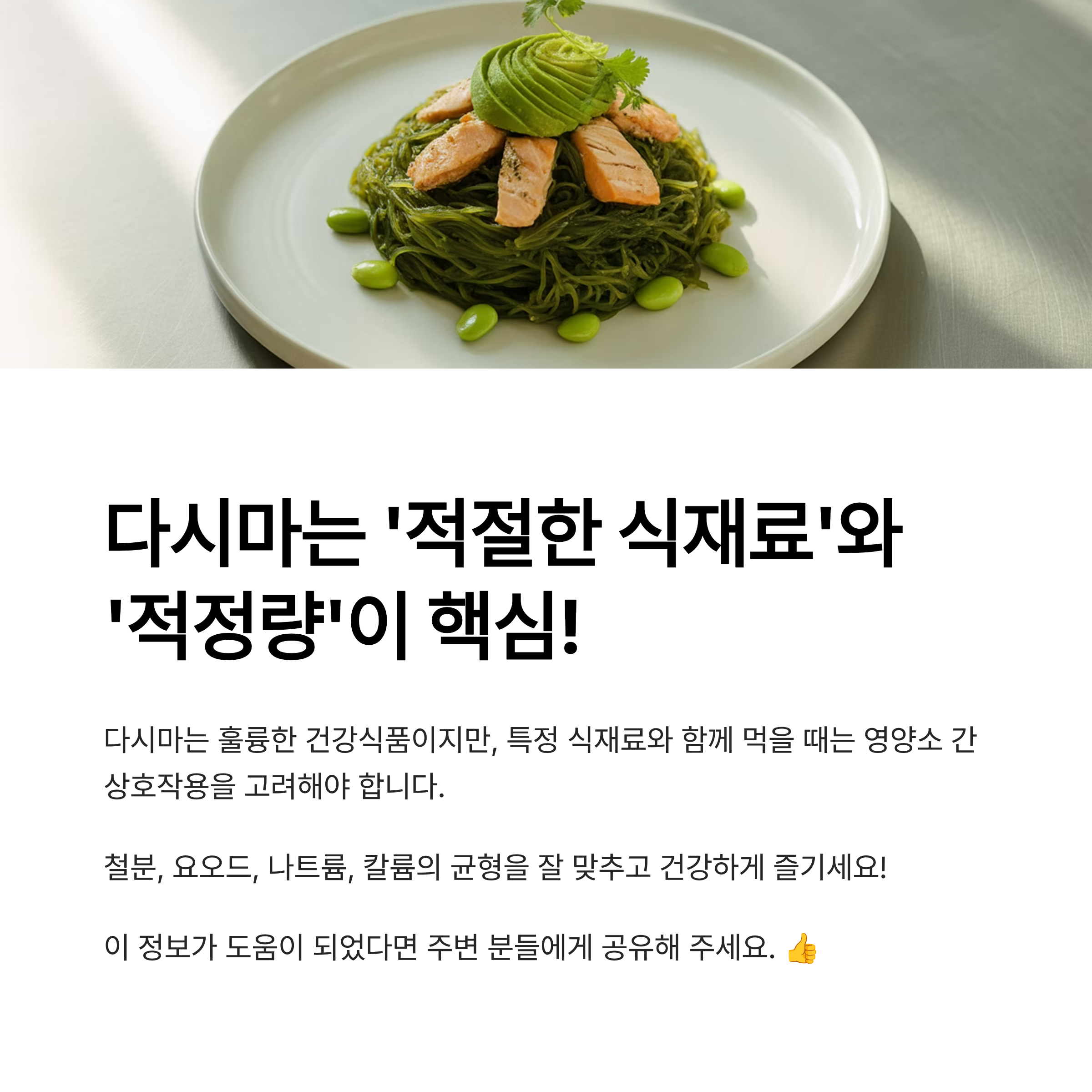 결론: 다시마는 '적절한 식재료'와 '적정량'이 핵심입니다