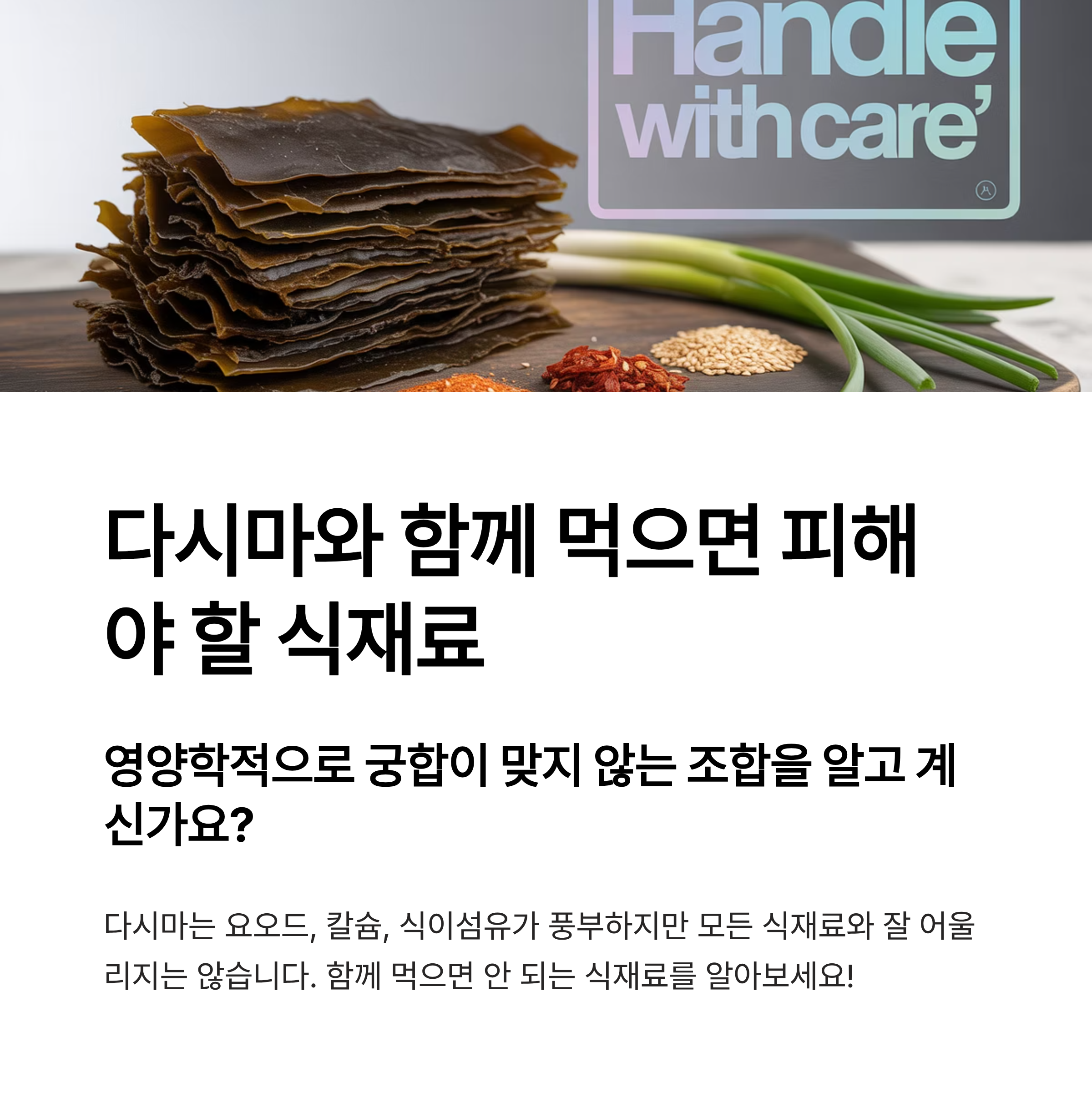 잘못된 식재료 조합을 피하고 다시마를 건강하게 즐기시기 바랍니다.
