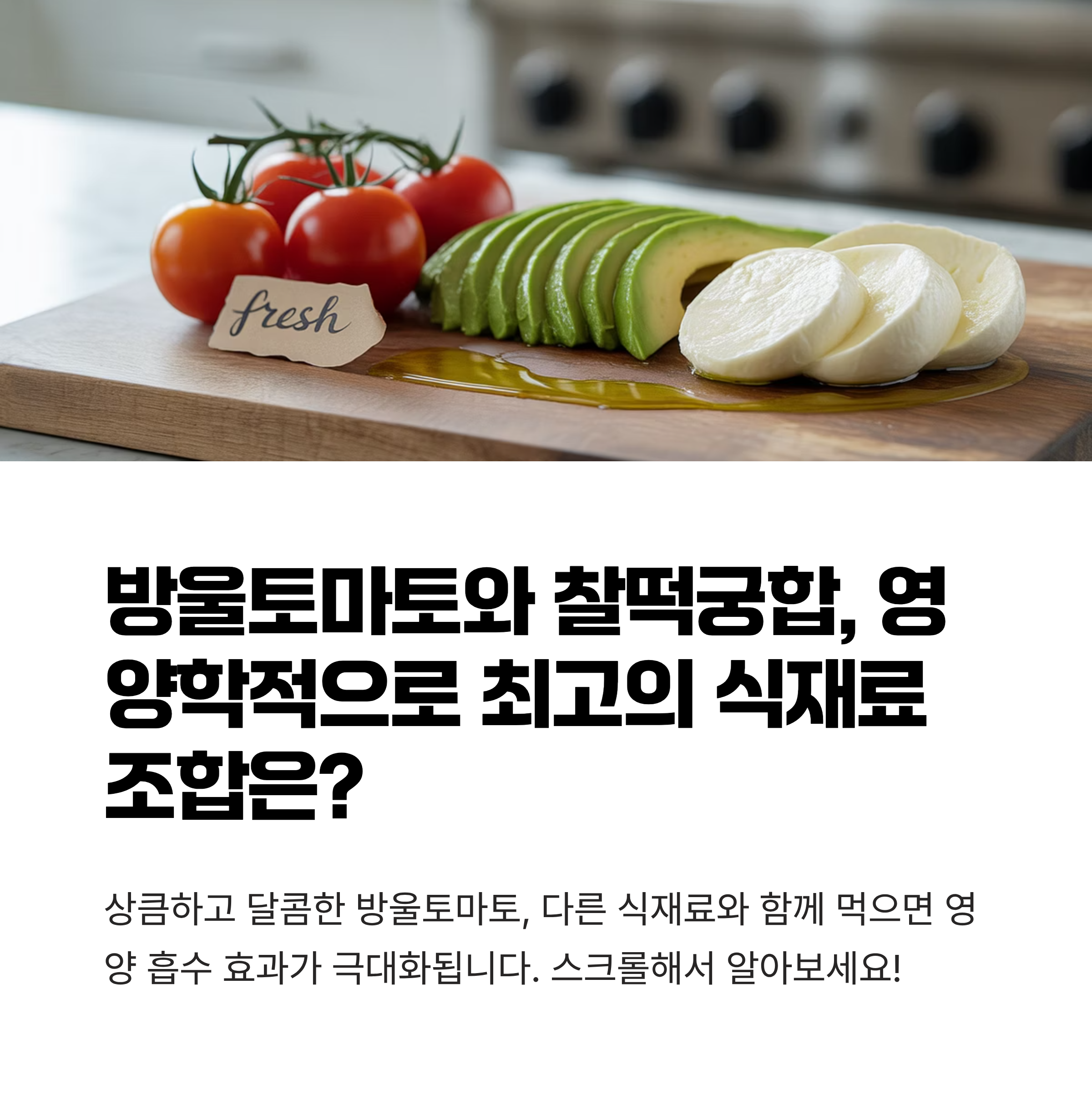 상큼하고 달콤한 방울토마토는 간식처럼 먹기에도 좋지만, 다른 식재료와 조합하면 영양 흡수 효과를 극대화할 수 있습니다. 비타민 C, 라이코펜이 풍부한 방울토마토는 지용성 영양소인 만큼 함께 먹는 식재료에 따라 체내 흡수율이 크게 달라집니다. 오늘은 방울토마토와 영양학적으로 잘 어울리는 식재료를 소개하고, 왜 이 조합이 건강에 좋은지 쉽게 설명해드리겠습니다.