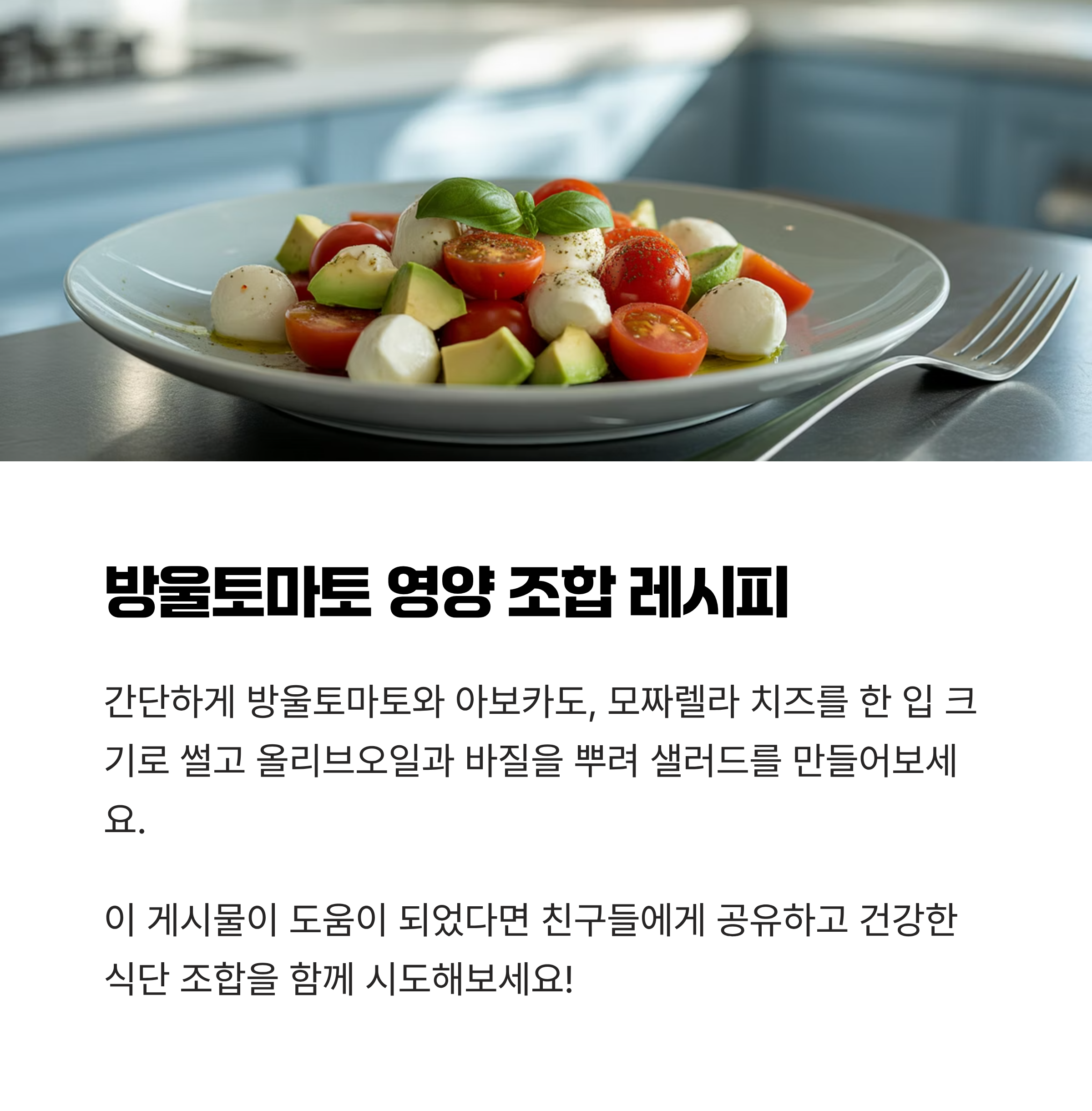 모짜렐라 치즈의 칼슘과 방울토마토의 비타민 C가 함께 작용해 뼈 건강을 더욱 튼튼하게 만들어줍니다.