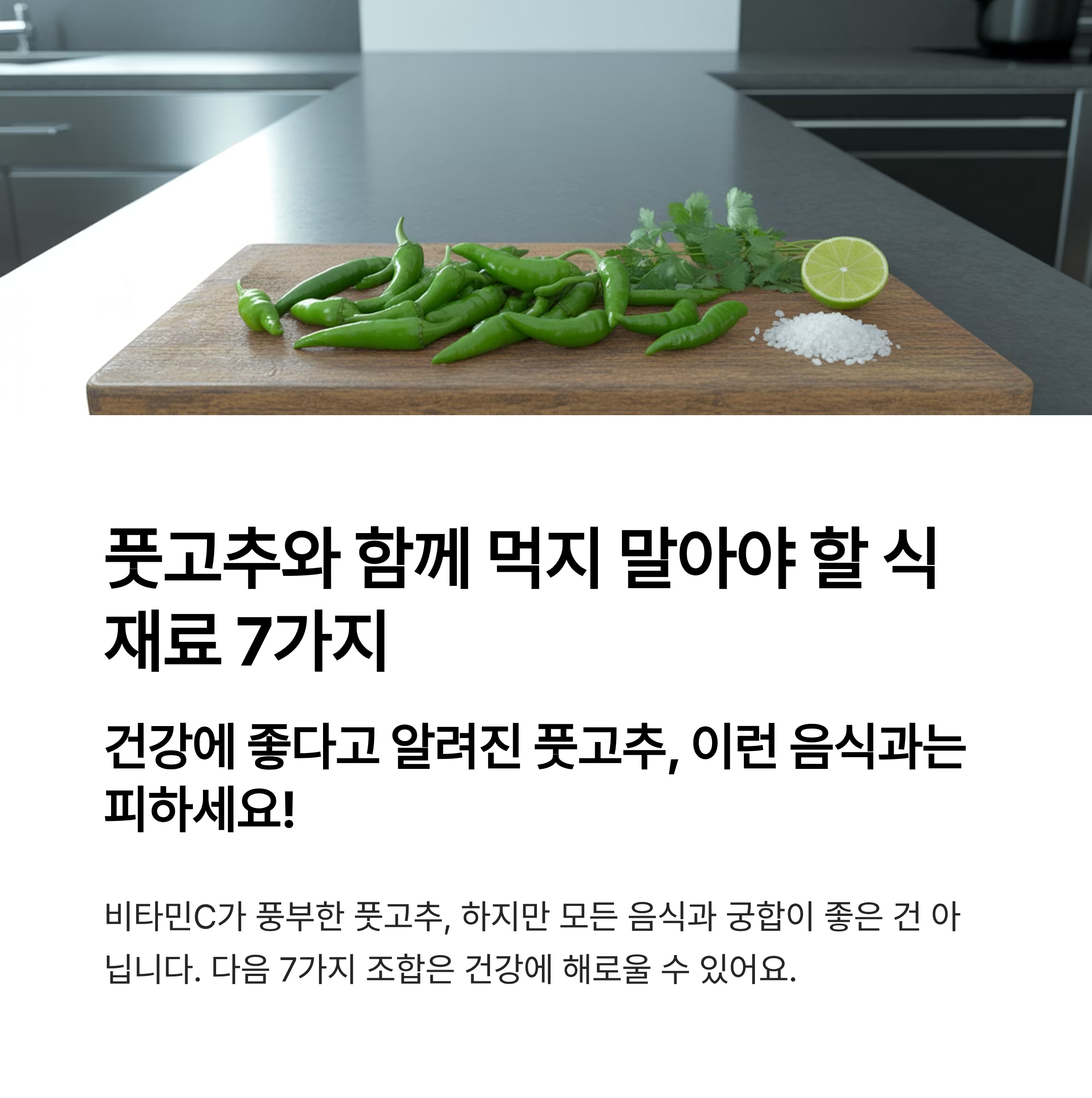 풋고추는 비타민C와 식이섬유가 풍부해 건강에 좋은 채소로 알려져 있습니다. 하지만 아무 식재료와 섞어 먹는다고 다 좋은 것은 아닙니다. 영양학적으로 흡수를 방해하거나 위에 부담을 줄 수 있는 조합도 존재합니다. 이 글에서는 풋고추와 어울리지 않는 식재료들을 살펴보고, 건강한 식습관을 위한 팁도 함께 정리해드립니다.
