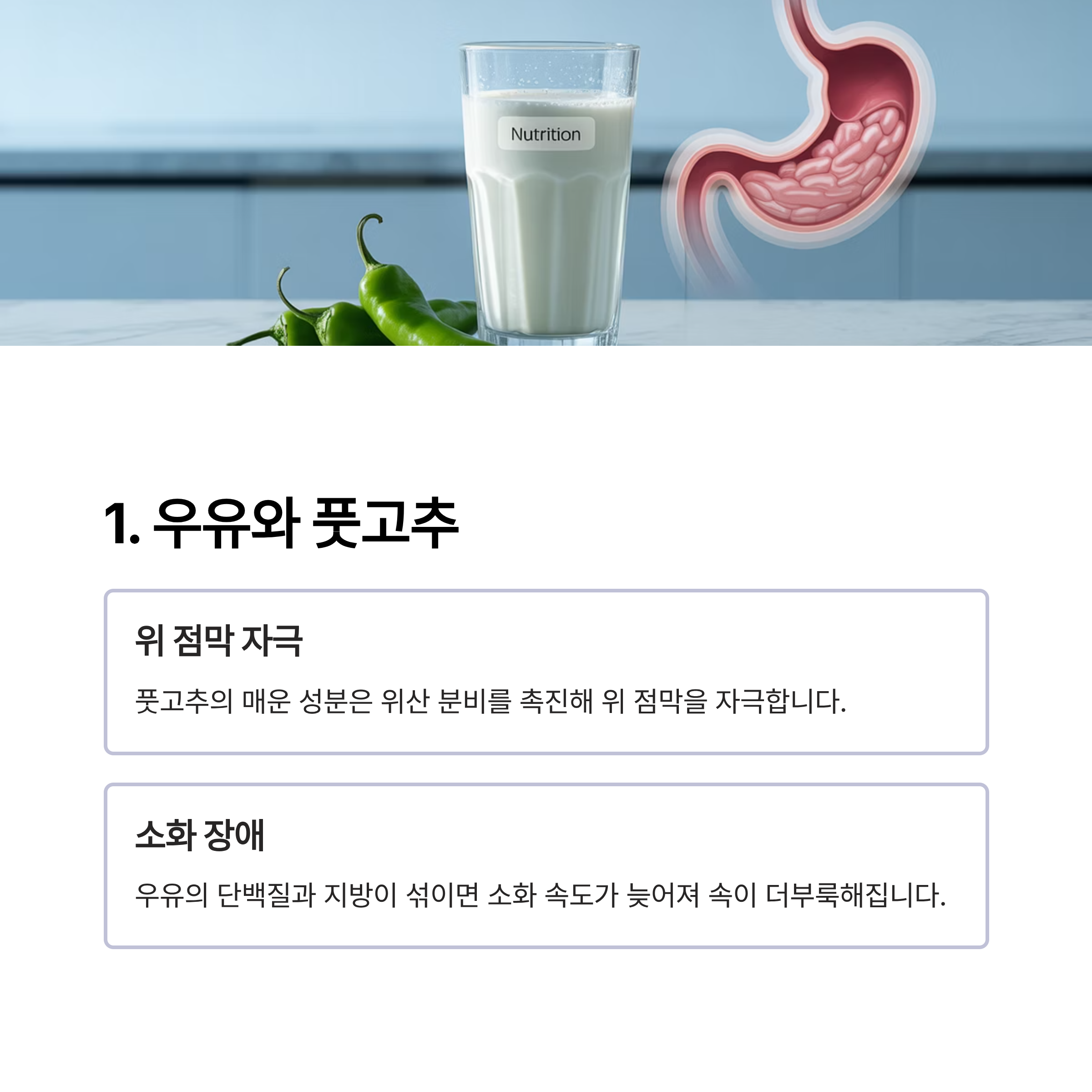 우유와 풋고추: 위 점막 자극 주의