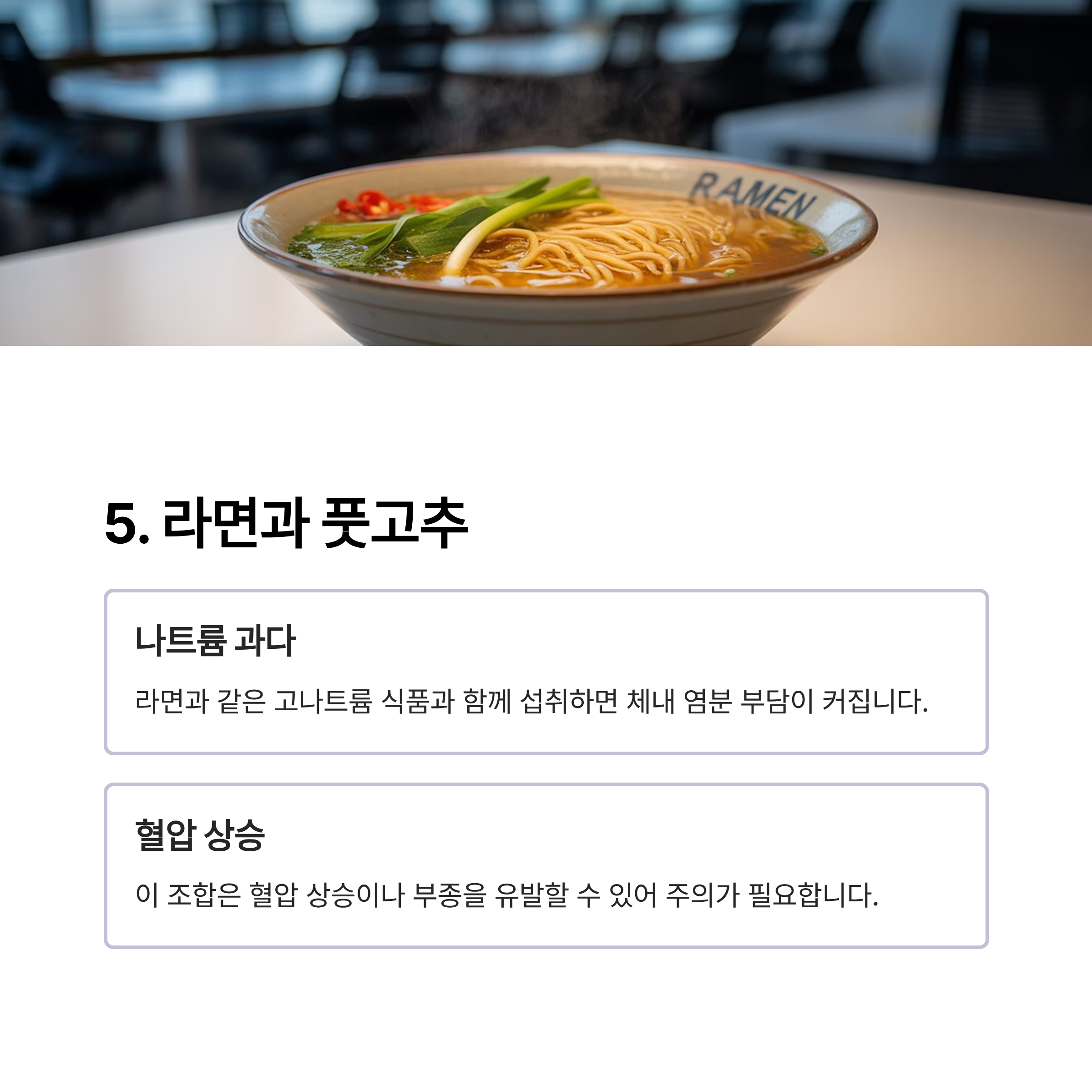 라면과 풋고추: 나트륨 부담 가중
