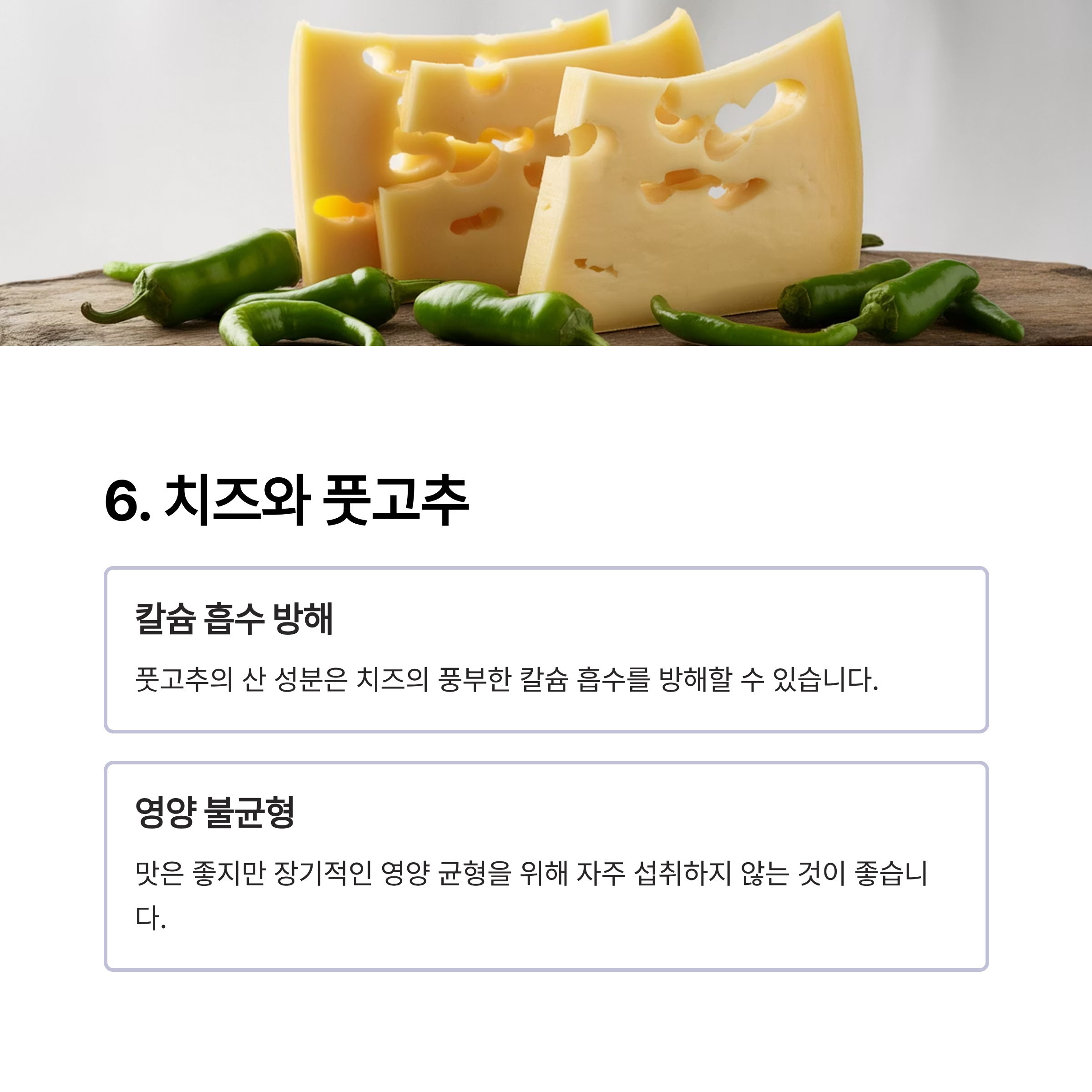치즈와 풋고추: 영양 흡수 균형 깨짐