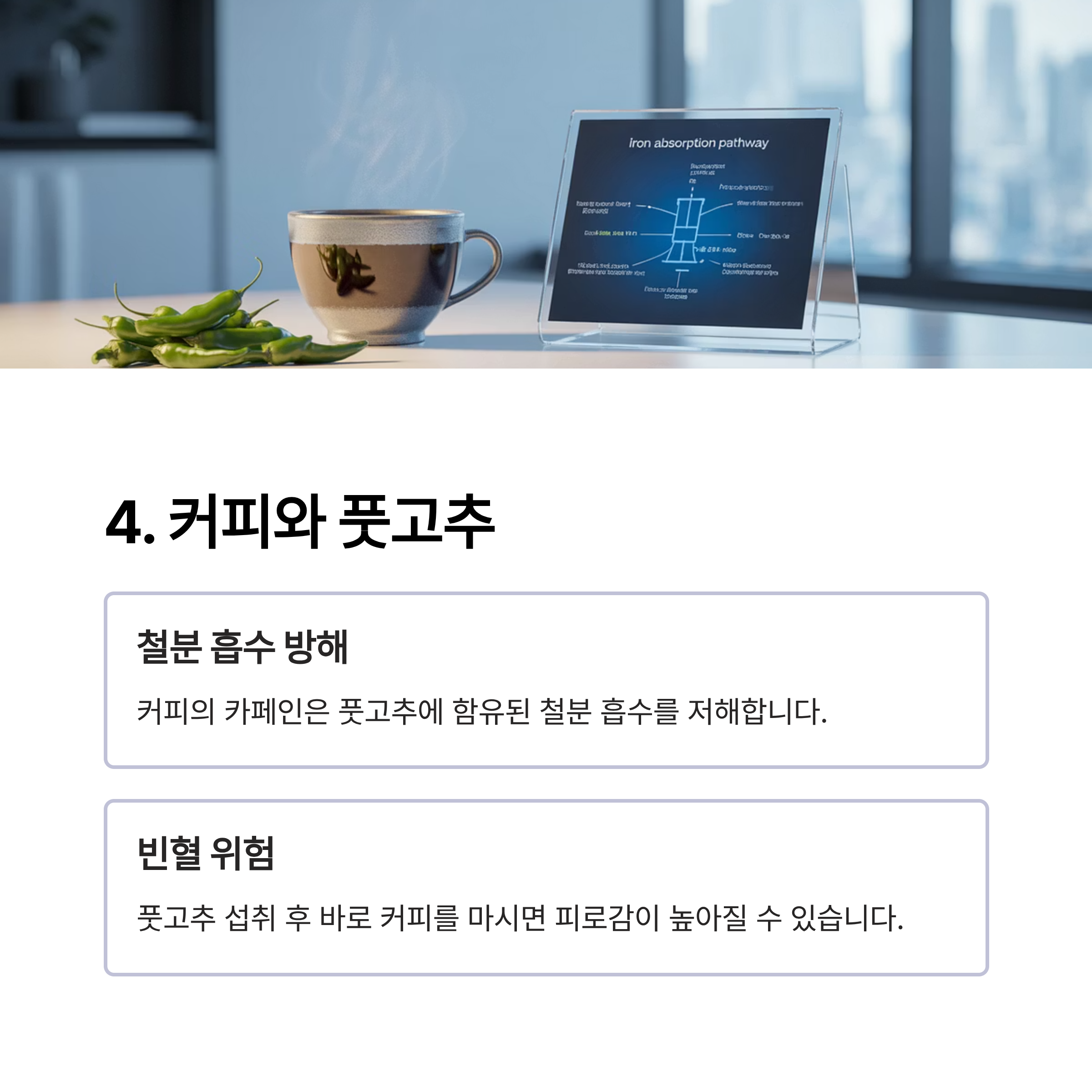 커피와 풋고추: 철분 흡수 방해