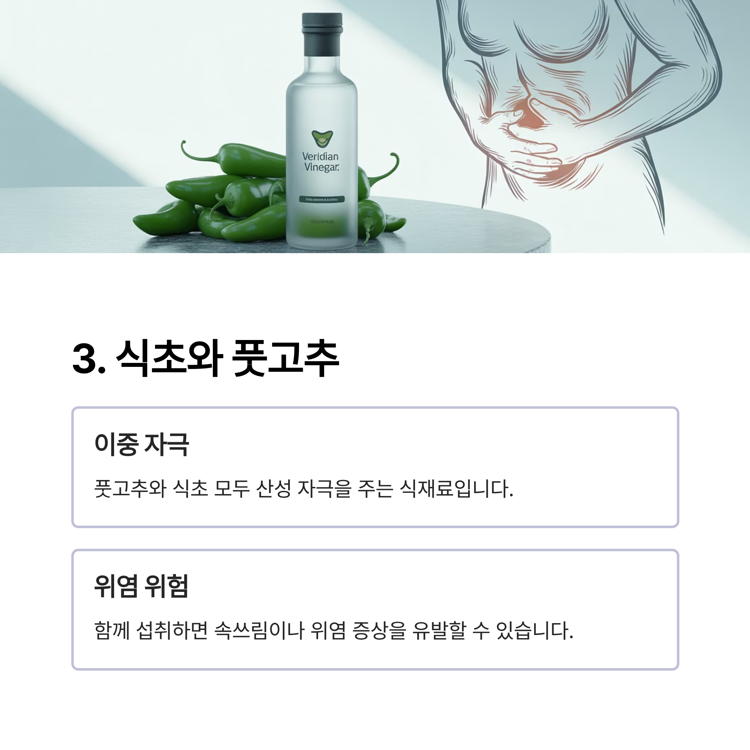식초와 풋고추: 위에 자극적인 조합