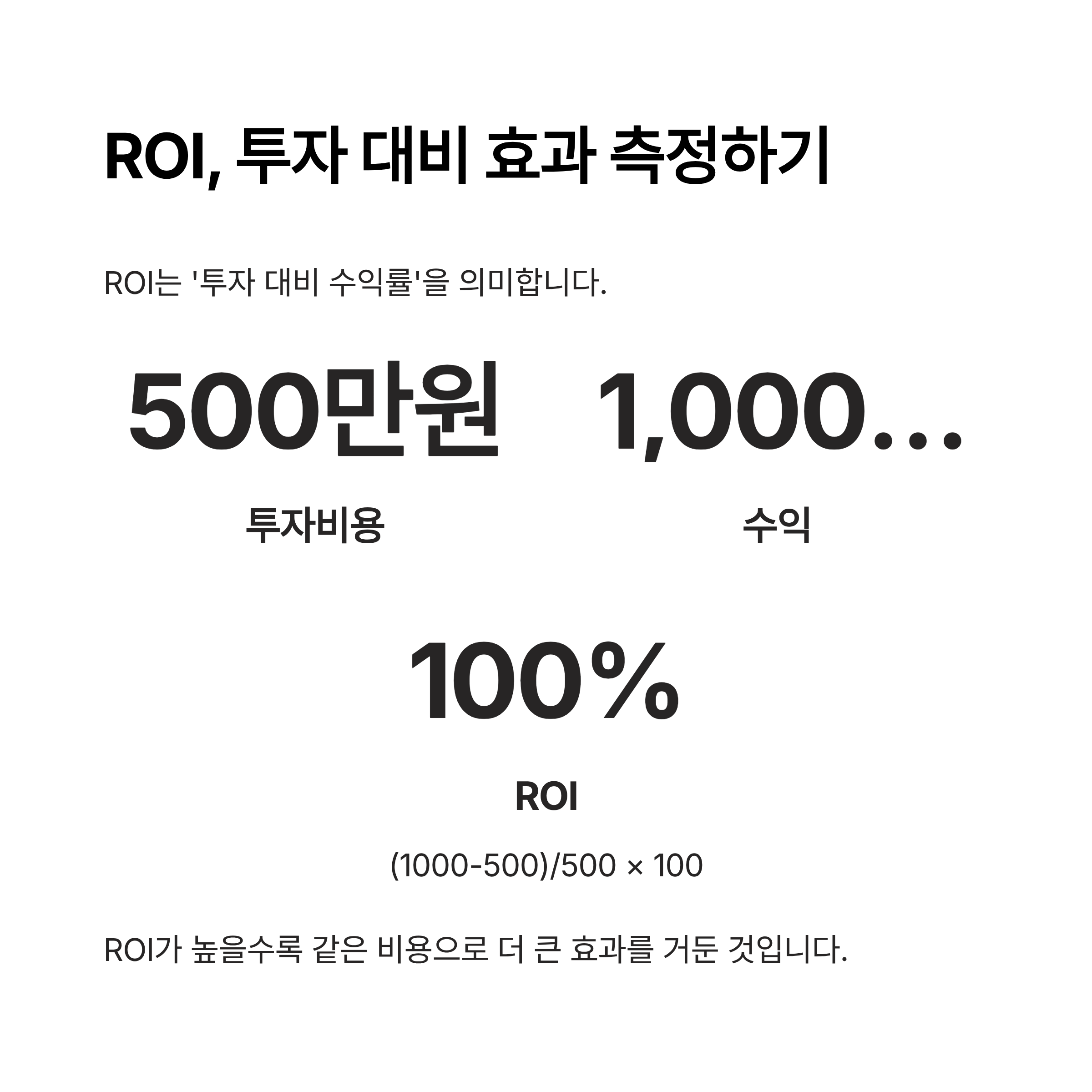 예를 들어 500만 원을 들여 광고를 했고, 그 결과로 1,000만 원의 매출을 올렸다면