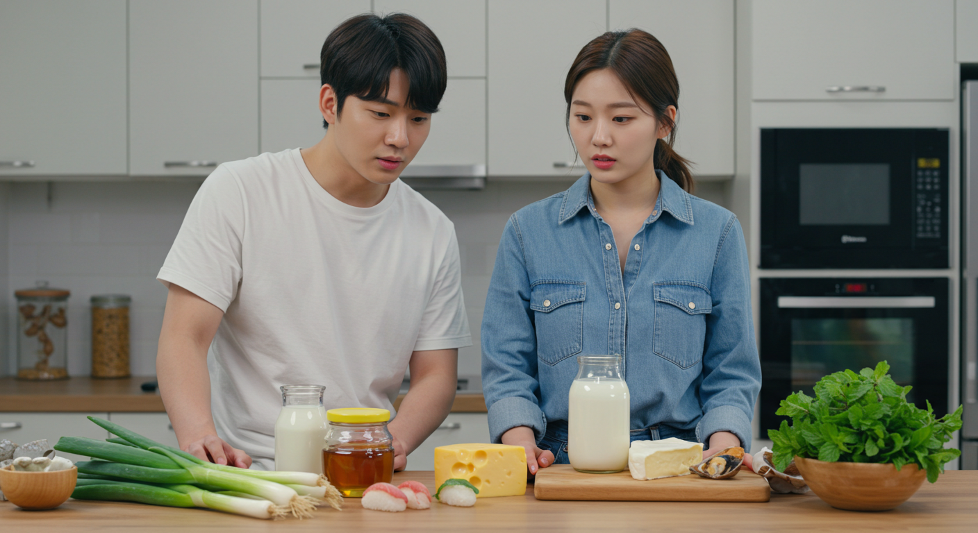 우유의 찬 성질과 대파의 따뜻한 성질이 충돌하면 위장이 민감한 사람에게 자극을 줄 수 있어요.