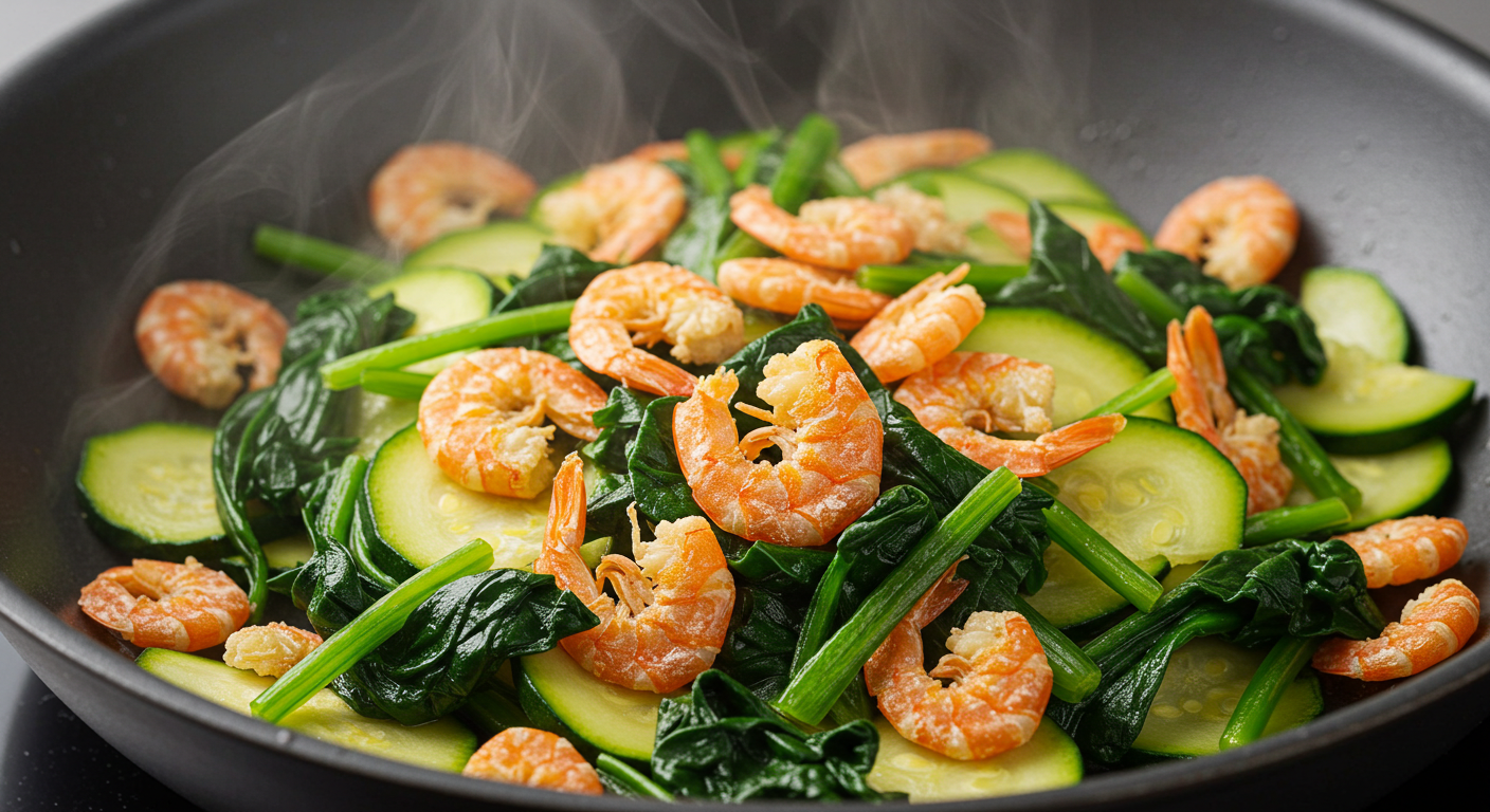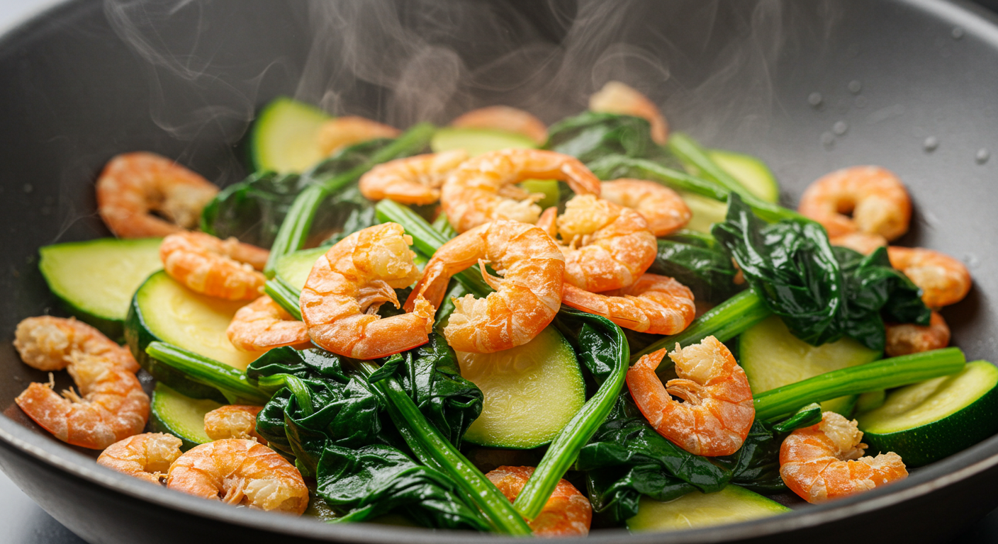 건새우는 단백질과 미네랄이 풍부한 반면 비타민과 식이섬유는 부족한 편입니다. 시금치, 부추, 애호박 같은 채소와 함께 사용하면 영양 균형이 잘 맞습니다. 볶음이나 무침에 살짝 넣기만 해도 맛과 영양이 동시에 올라갑니다.