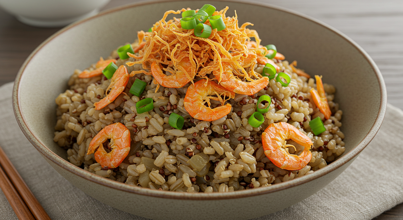밥이나 죽에 건새우를 더하면 훌륭한 영양 보충이 됩니다. 특히 현미, 보리, 퀴노아 같은 곡류와 함께 조리하면 탄수화물과 단백질, 미네랄이 조화를 이루어 든든한 식사가 완성됩니다.