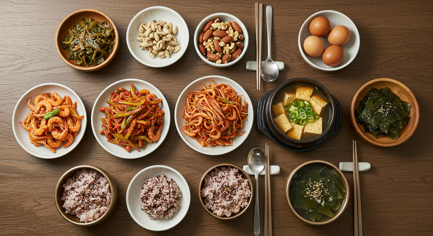 미역, 다시마, 김 같은 해조류는 요오드와 식이섬유가 풍부합니다. 건새우와 함께 국이나 무침에 넣으면 바다 향이 어우러지면서도 영양적 균형이 좋아집니다.