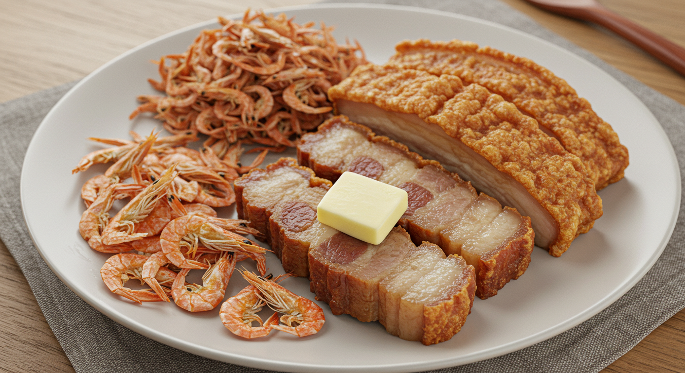 튀김, 삼겹살, 버터가 듬뿍 들어간 요리와 건새우를 함께 섭취하면 소화기관에 과부하가 걸릴 수 있습니다.